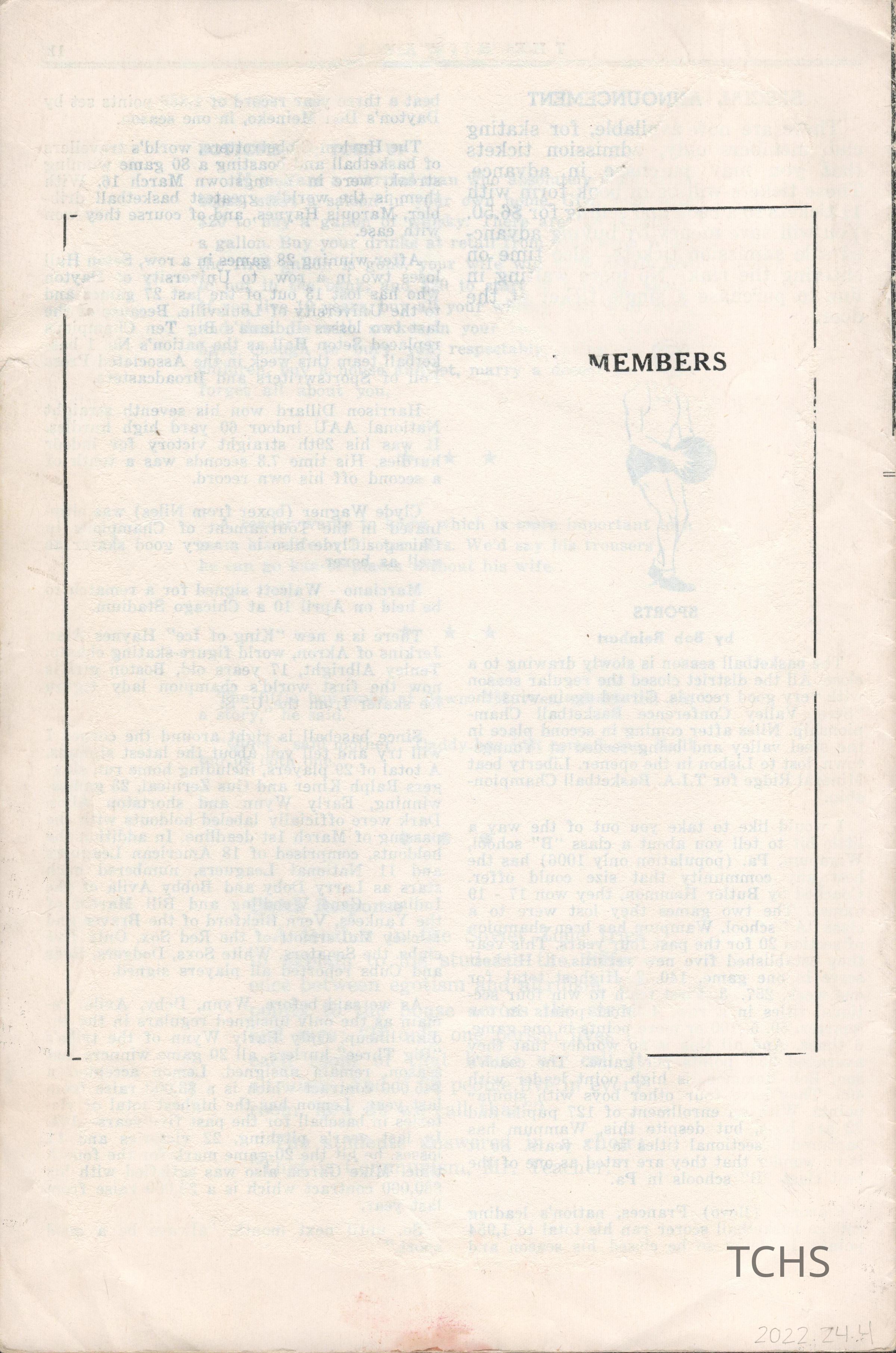 The Hi-Way roller rink March 1953 newsletter.