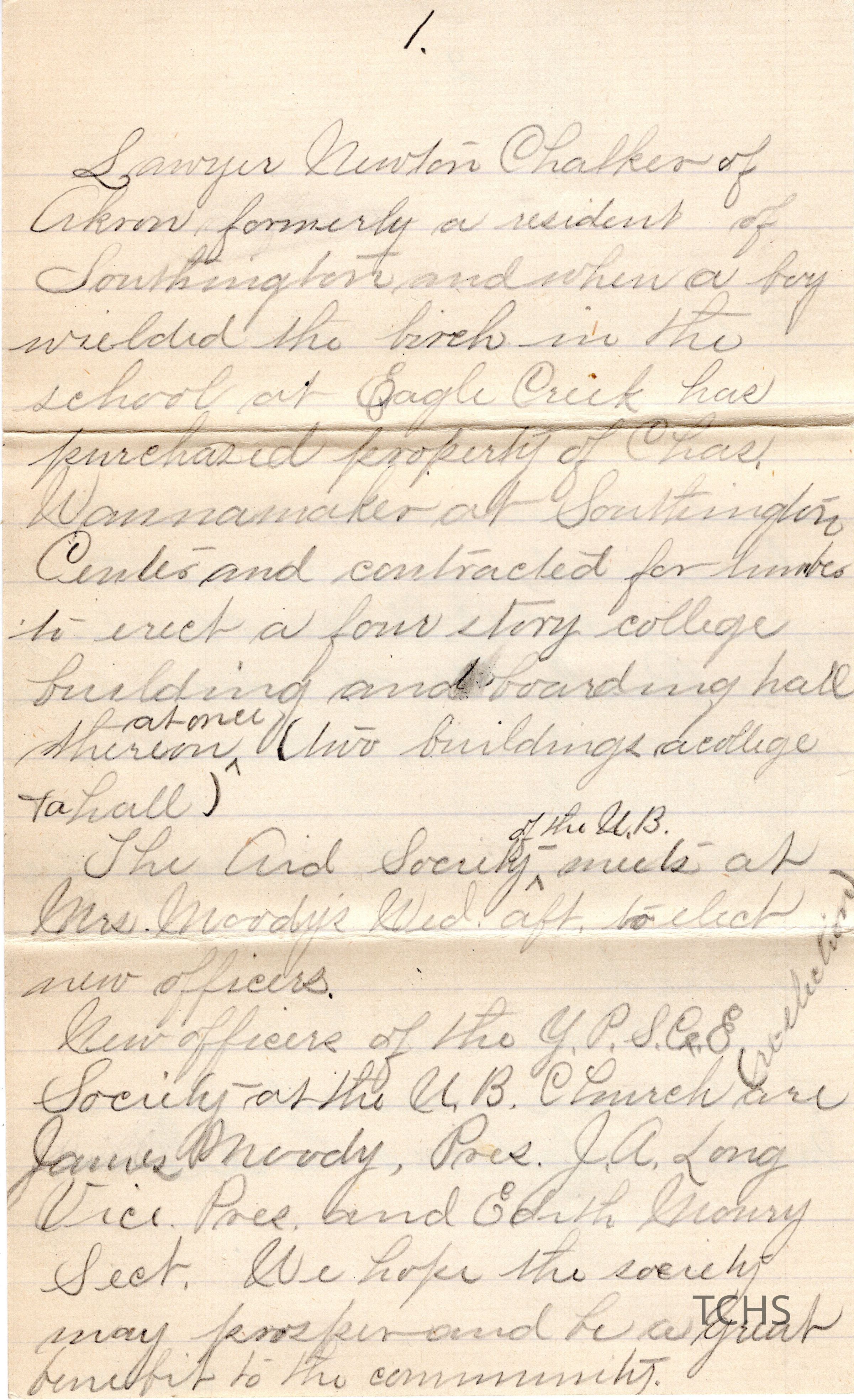 Four page personal letter from an unknown sender, addressed to D. M. Hine in Newton Falls, OhioAcquisition