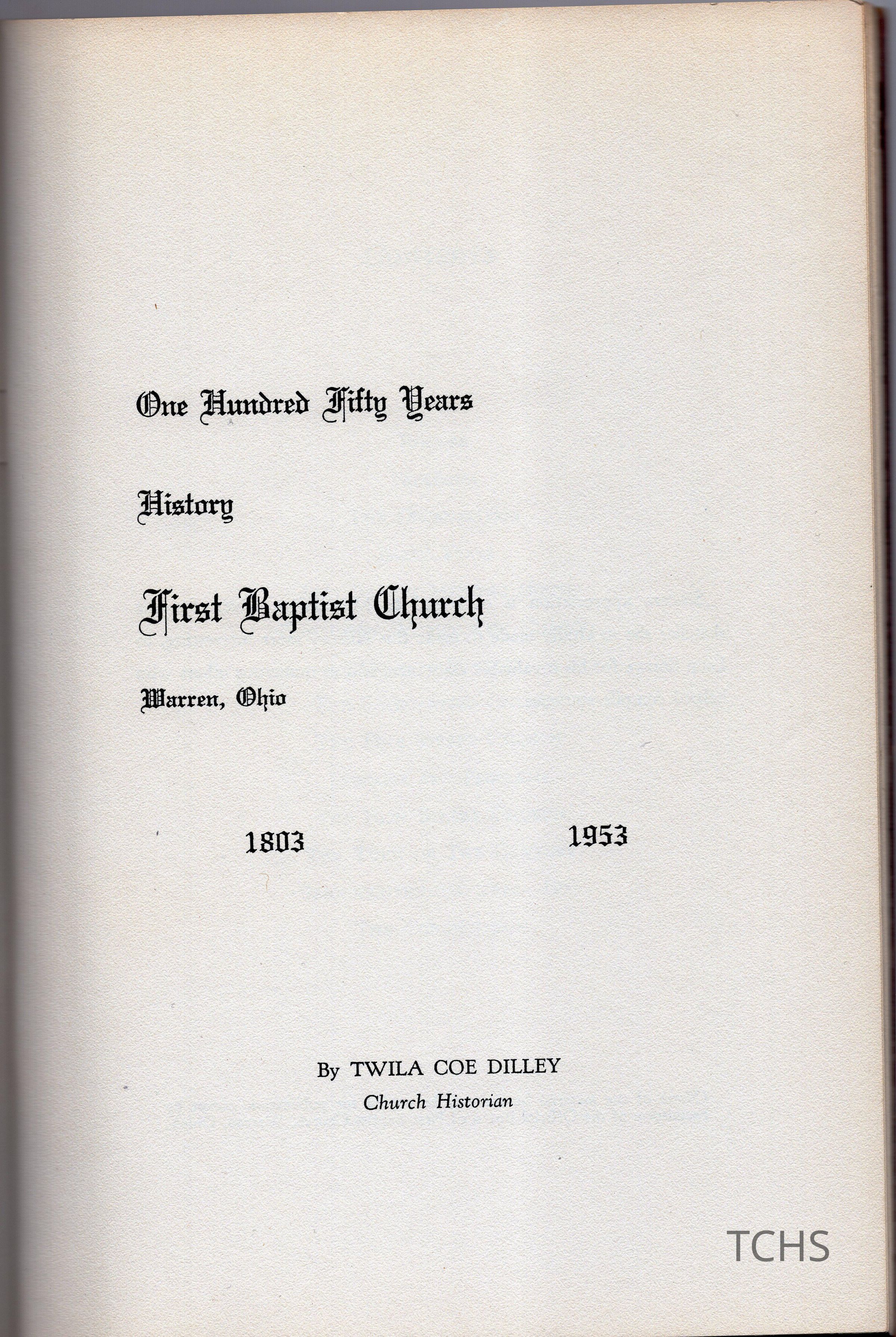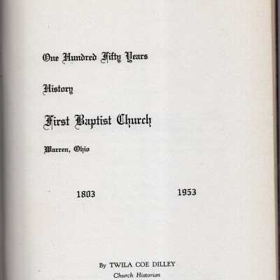 A history of First Baptist Church of Warren. 1803-1953. Created for 150th anniversary.Acquisition