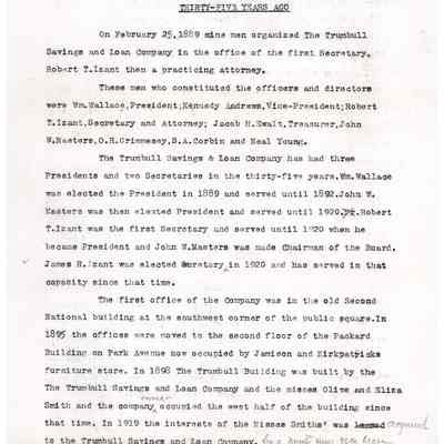 History of Trumbull Savings & Loan, 1921Entry/Object ID