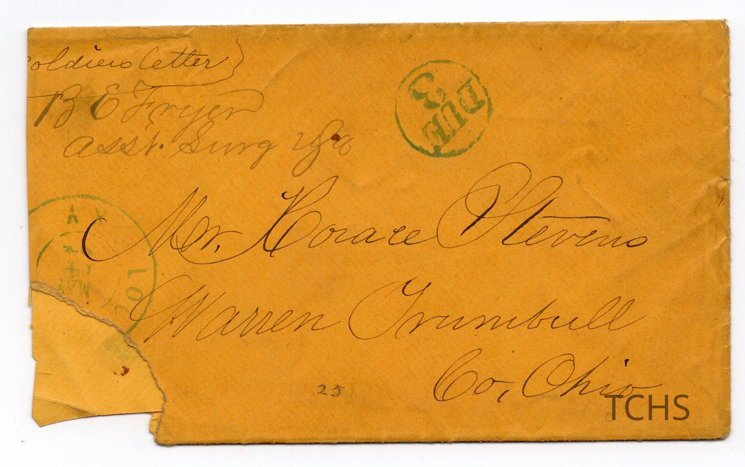 Envelope addressed to Mr. Horace Stevens, Warren. from B.E. Fryer. Date unknown.Collection