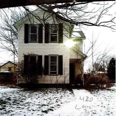 A photo printed on paper of a house at 420 Logan Ave in Warren, OH.Collection