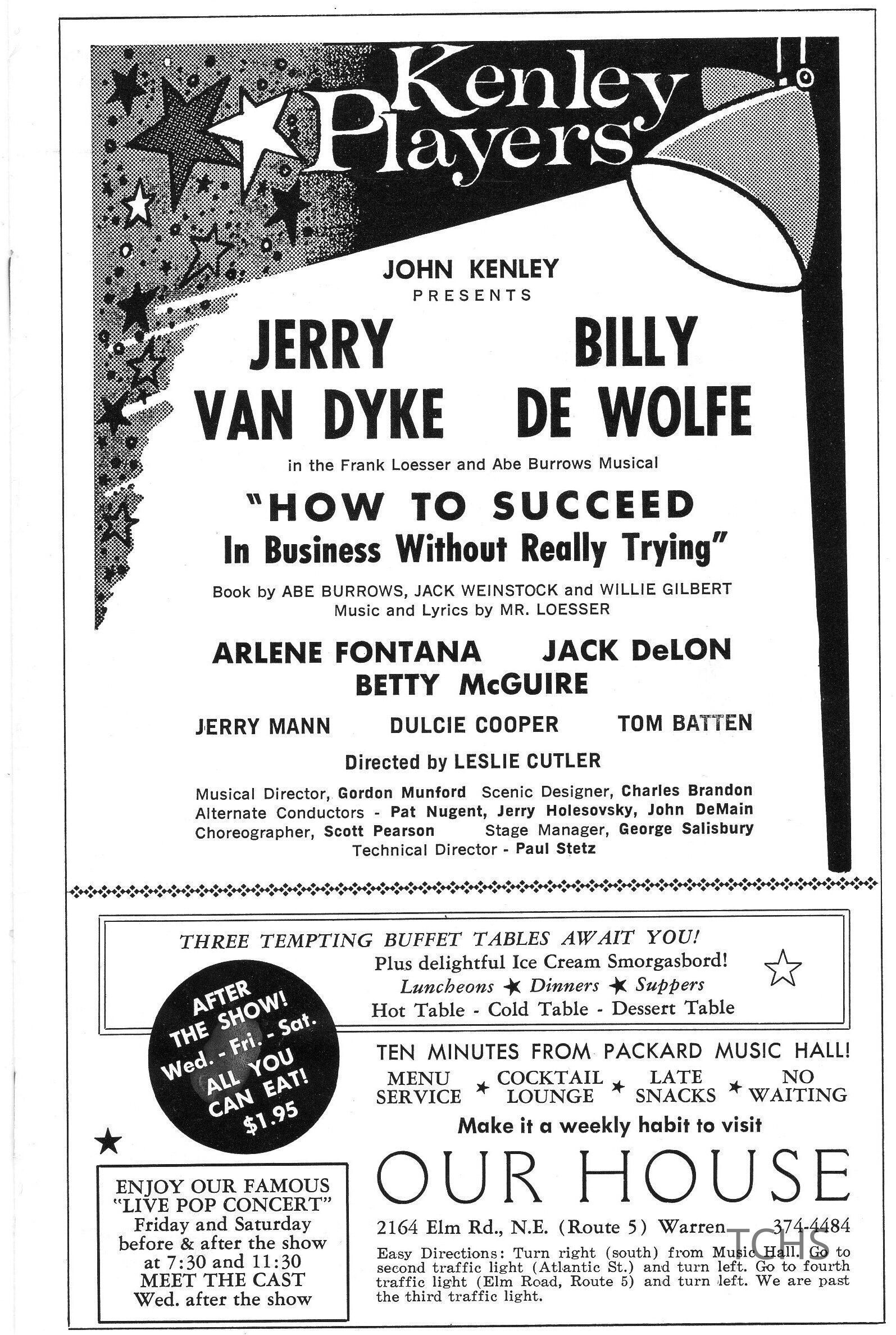 Batten, Tom, Fontana, Arlene, Salisbury, George, McGuire, Betty, Burrows, Abe, Gilbert, William, Cutler, Leslie, Pearson, Scott, Kenley, John, De Wolfe, Billy, Holesovsky, Jerry, Loesser, Frank, Stetz, Paul, DeLon, Jack, Our House, Munford, Gordon, Van Dyke, Jerry, DeMain, John, Kenley Players, Mann, Jerry, Nugent, Pat, Cooper, Dulcie, Weinstock, Jack, Brandon, Charles