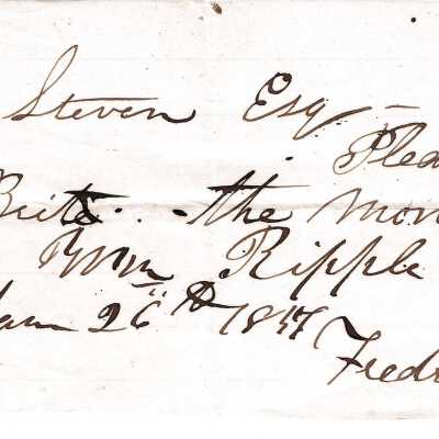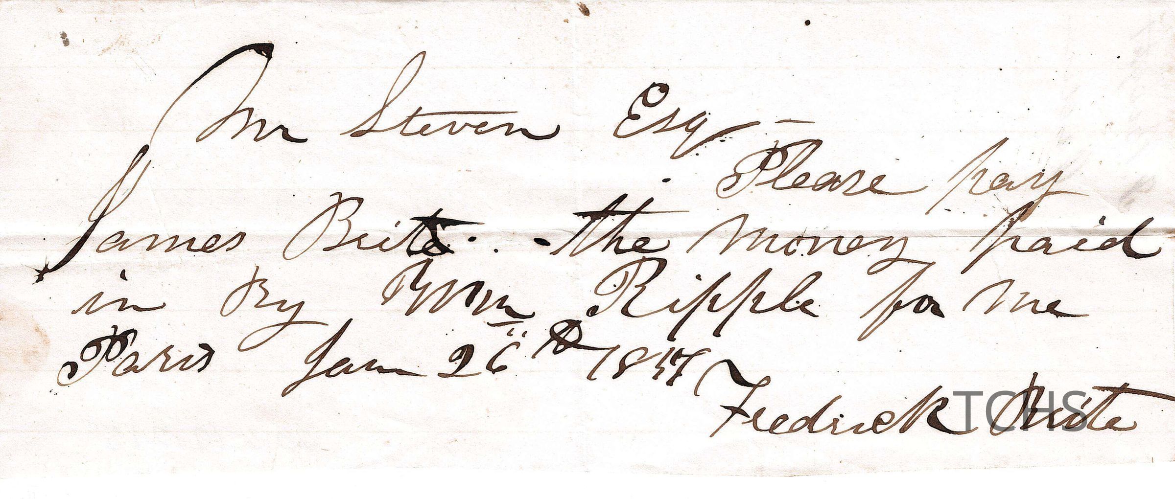 Invoice from Frederick Brite to Horace Stevens, asking for payment to James Brite.Location