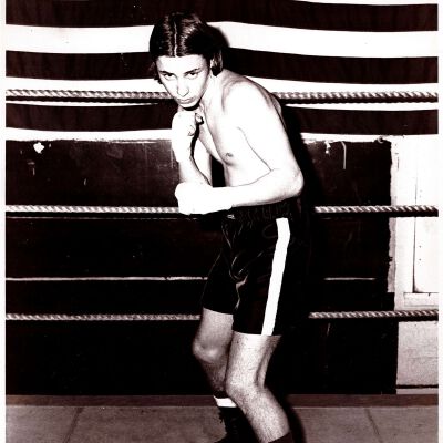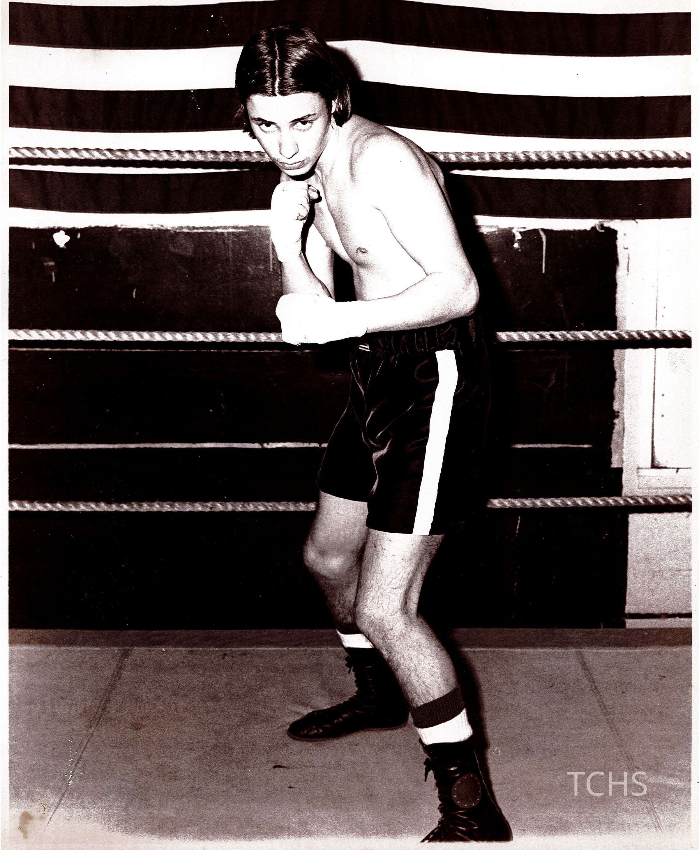 Boxing photo of John Harvey. Photograph taken by Tribune Chronicle Sports Editor Dick Olmstead.