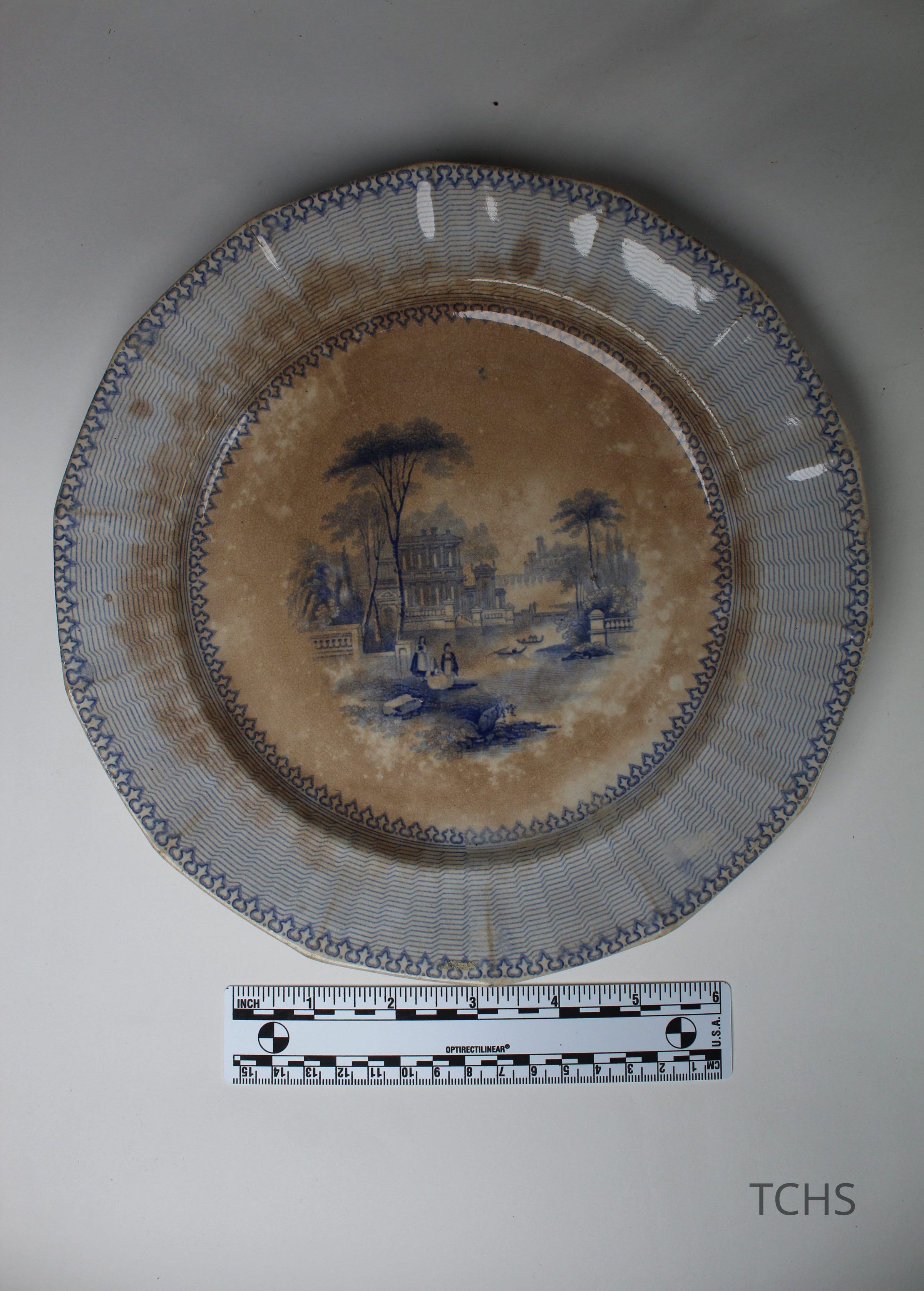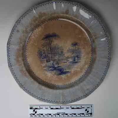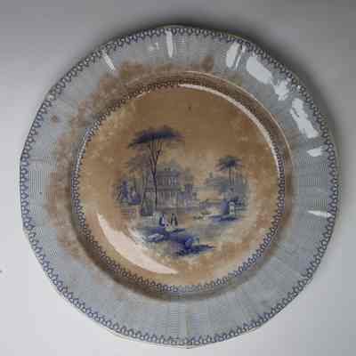 John Ridgway dinner plate in Medina blue, circa 1830s.Collection
