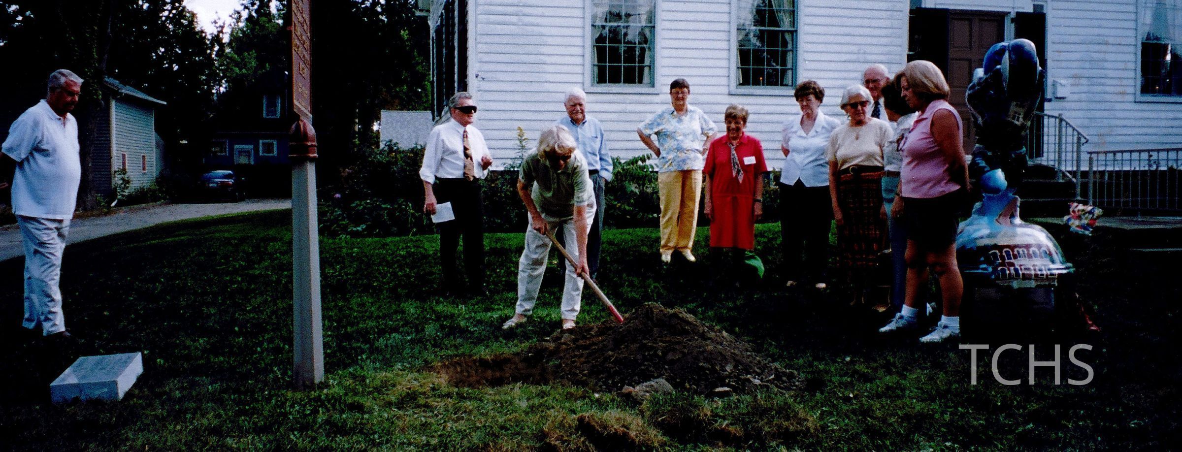 Members/Officers of Trumbull County Historical Society burying a time capsule into the ground in front of the John Stark Edwards House. Time capsule and stone plaque were dedicated on October 7, 2007. The time capsule will be opened in 100 years in 2107.Location