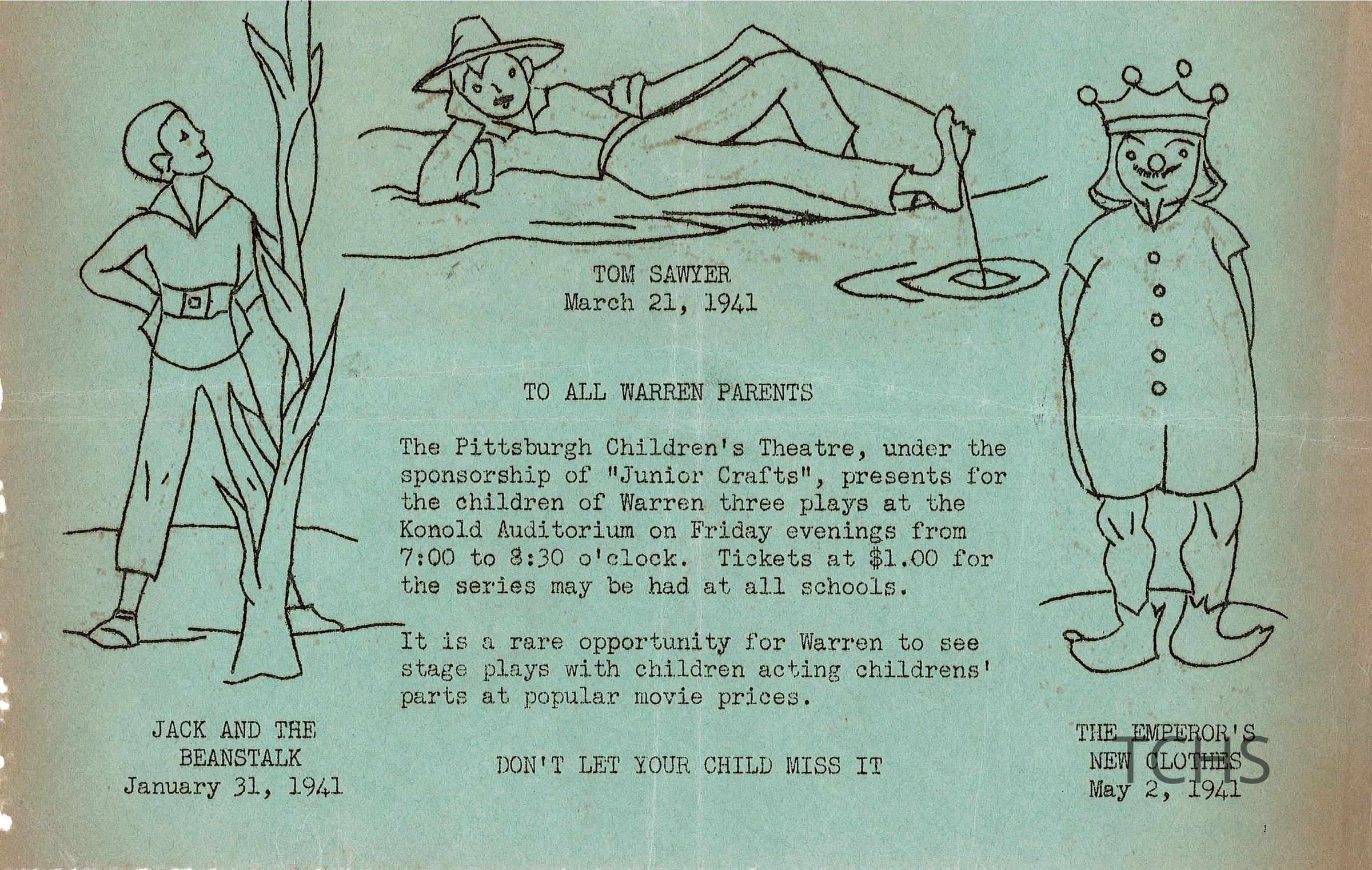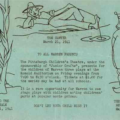 Junior Crafts notice of sponsorship of Pittsburgh Children's Theatre January 31, 1941 & May 2, 1941Acquisition