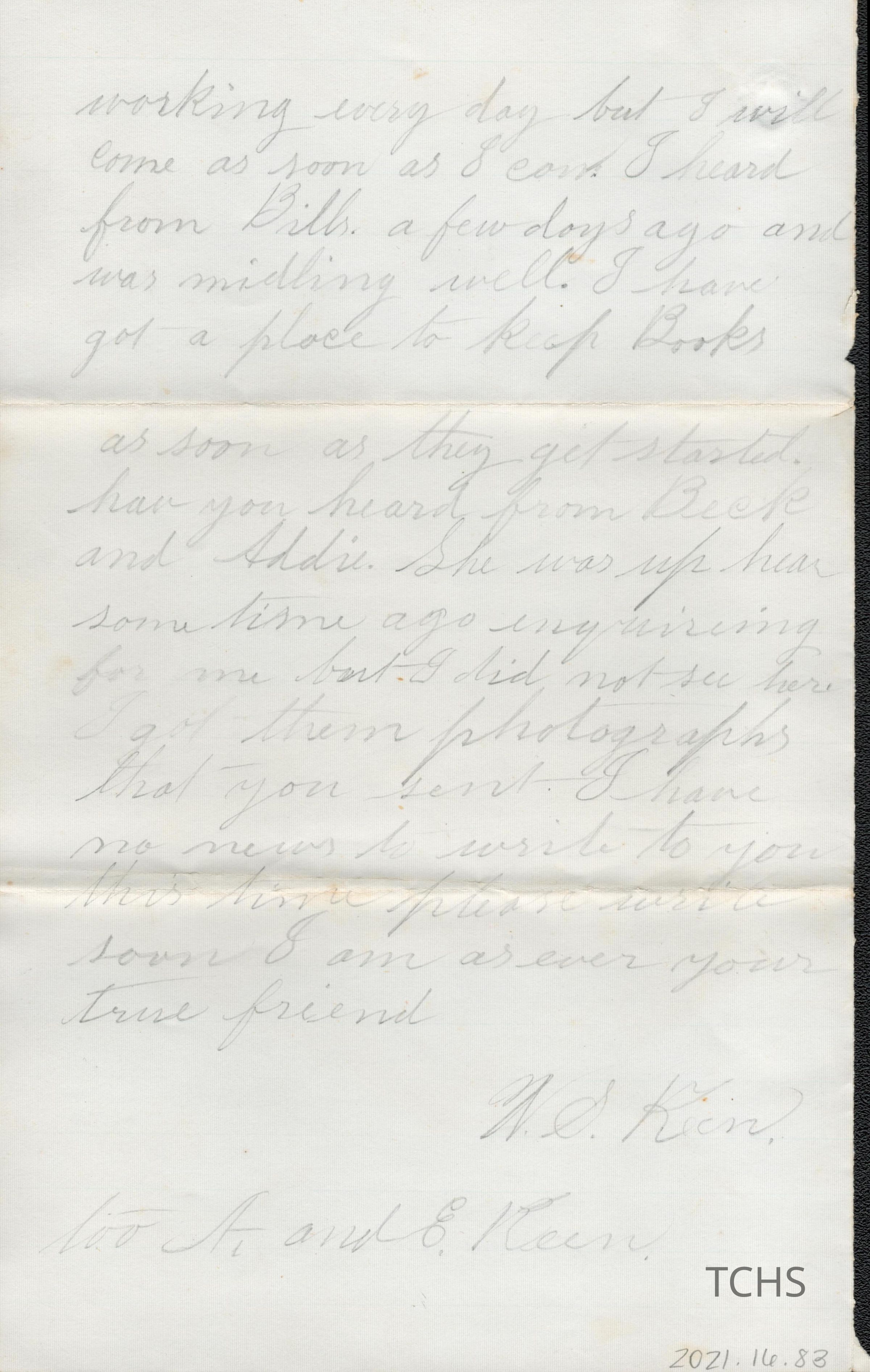 Letter addressed to Aaron and Eleanor Keen from their son Walter Keen.