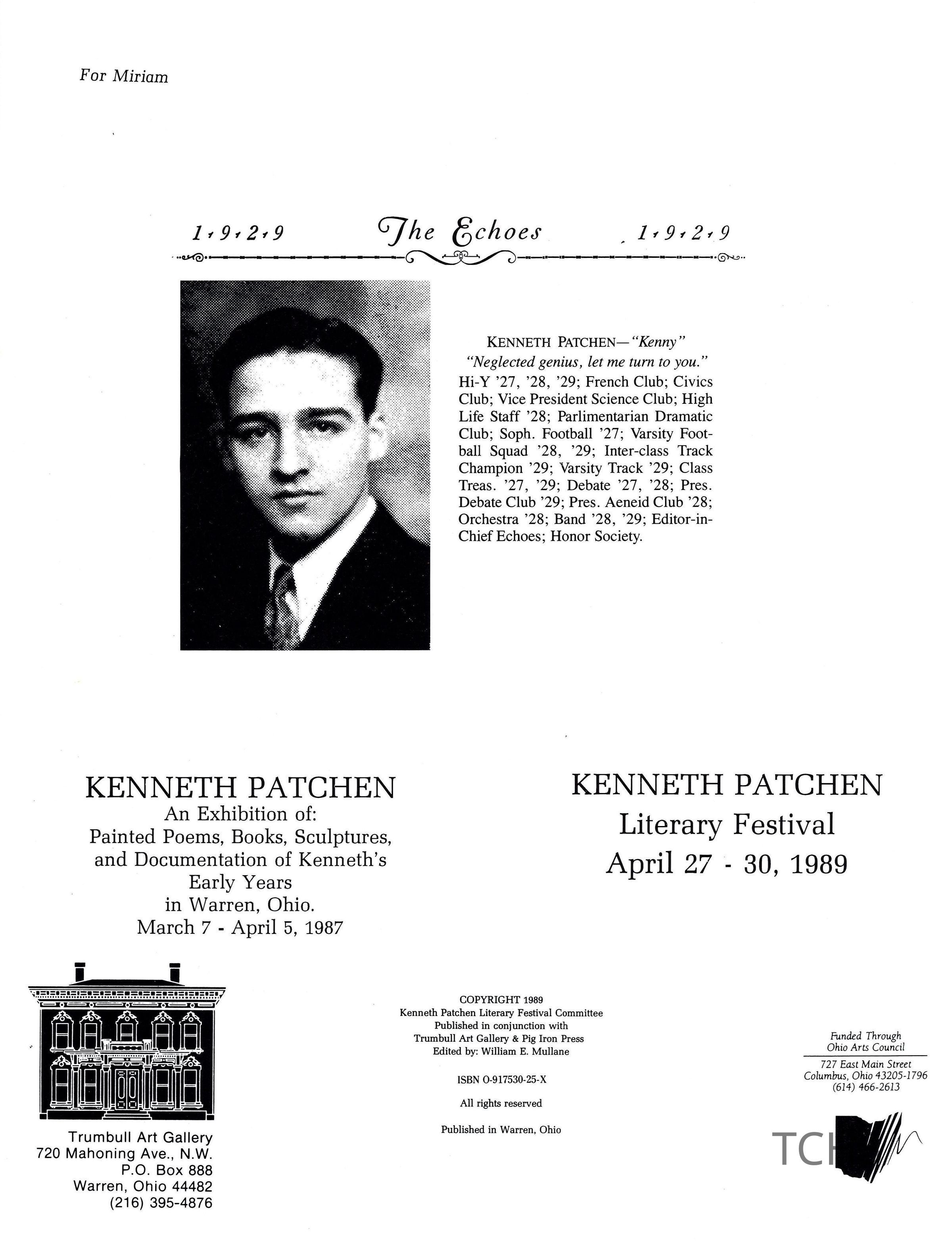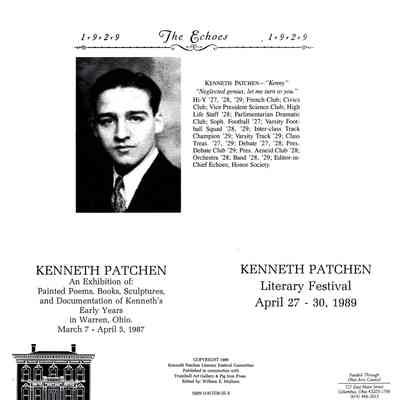 Kenneth Patchen Literary Festival April27-30, 1989 at Trumbull Art Gallery catalogueAcquisition