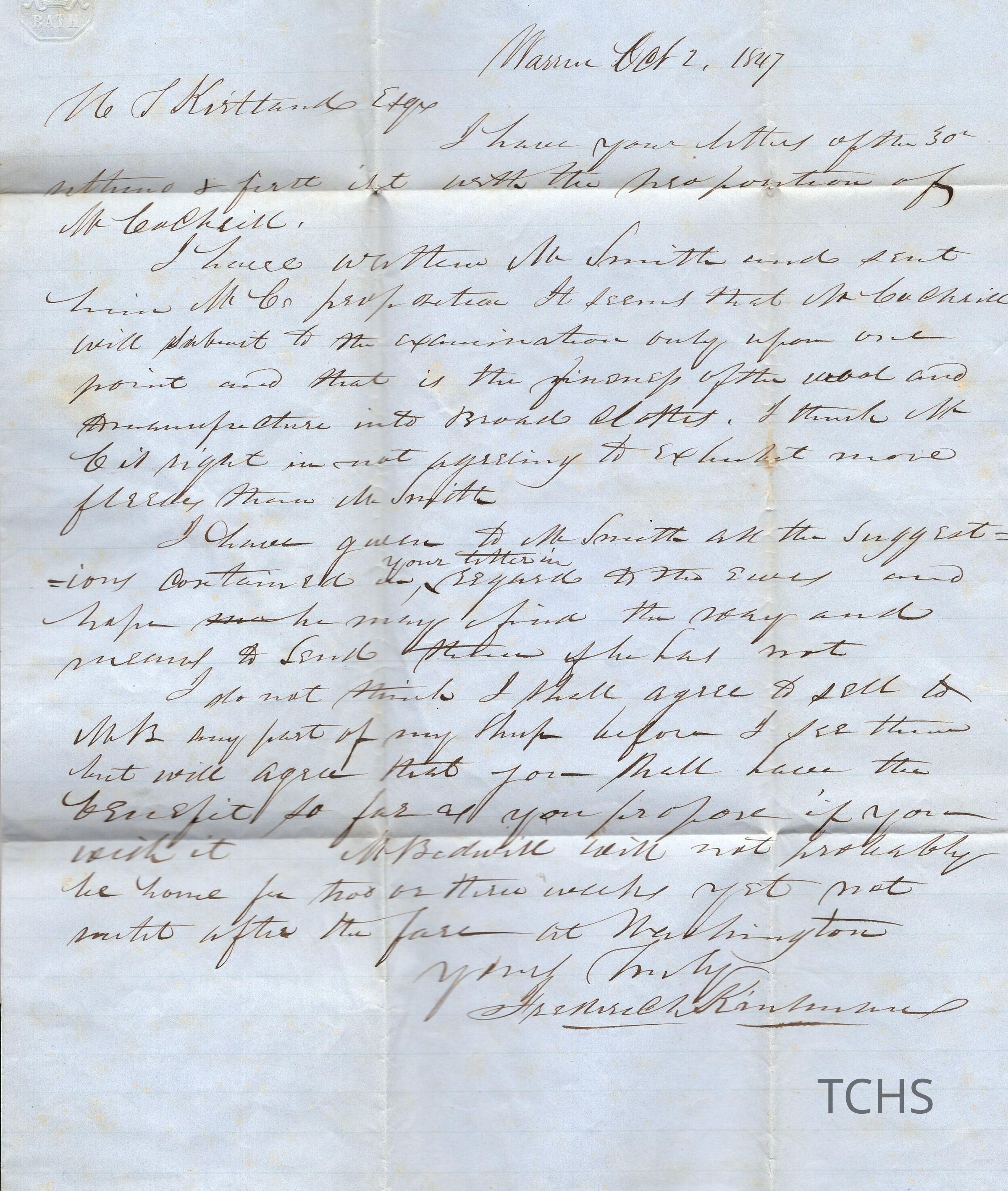 Letter addressed to Henry Kirtland Esq. of Poland, Ohio from Frederick Kinsman of Warren.