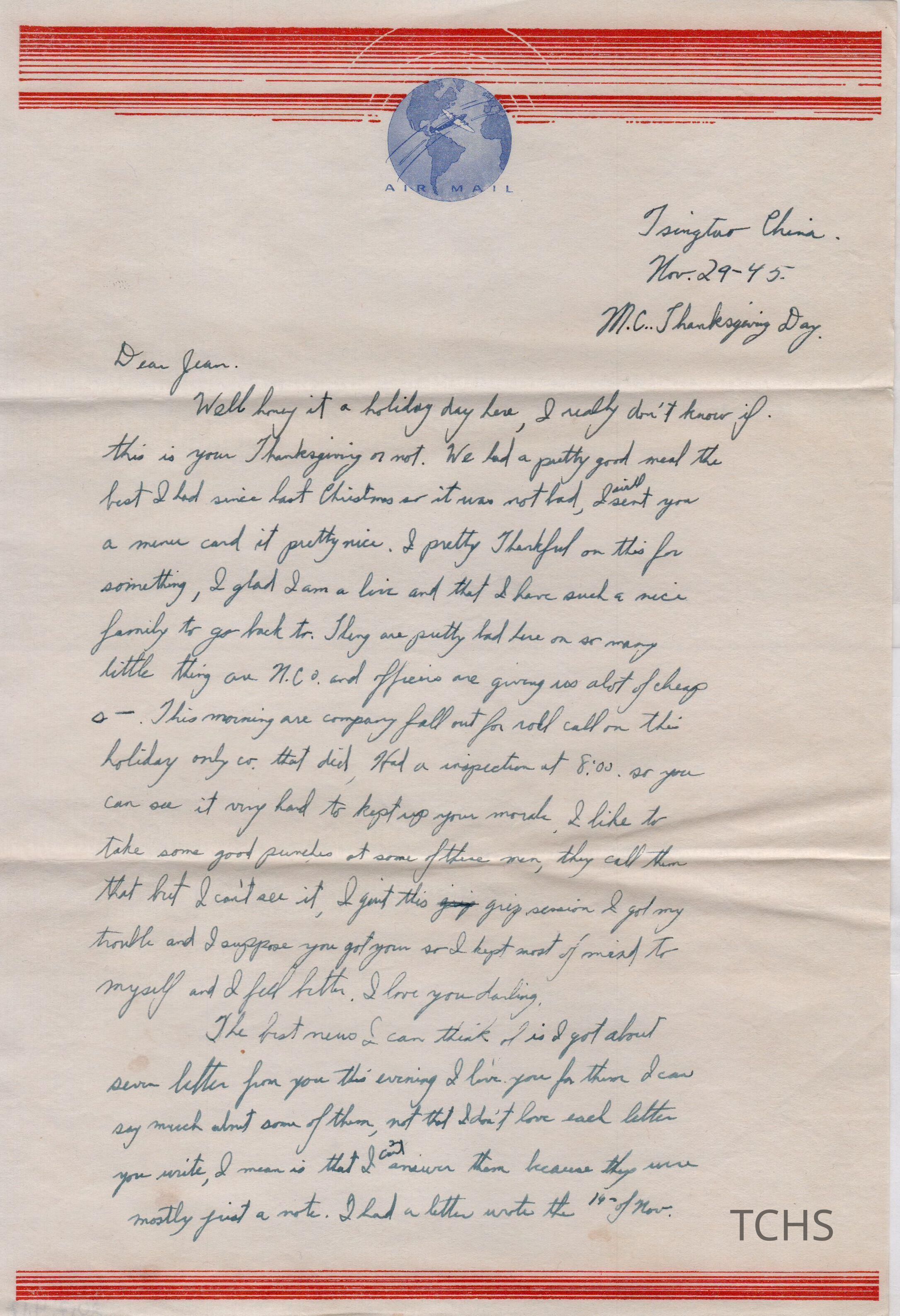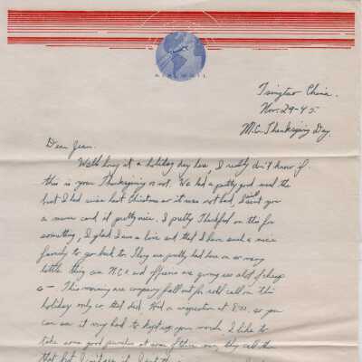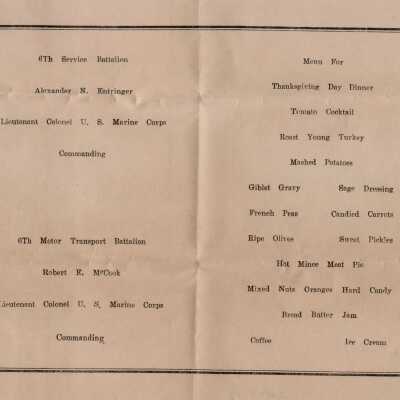 Letter to Jean Law from Russell Law and Thanksgiving program for the sixth marine divisionCollection