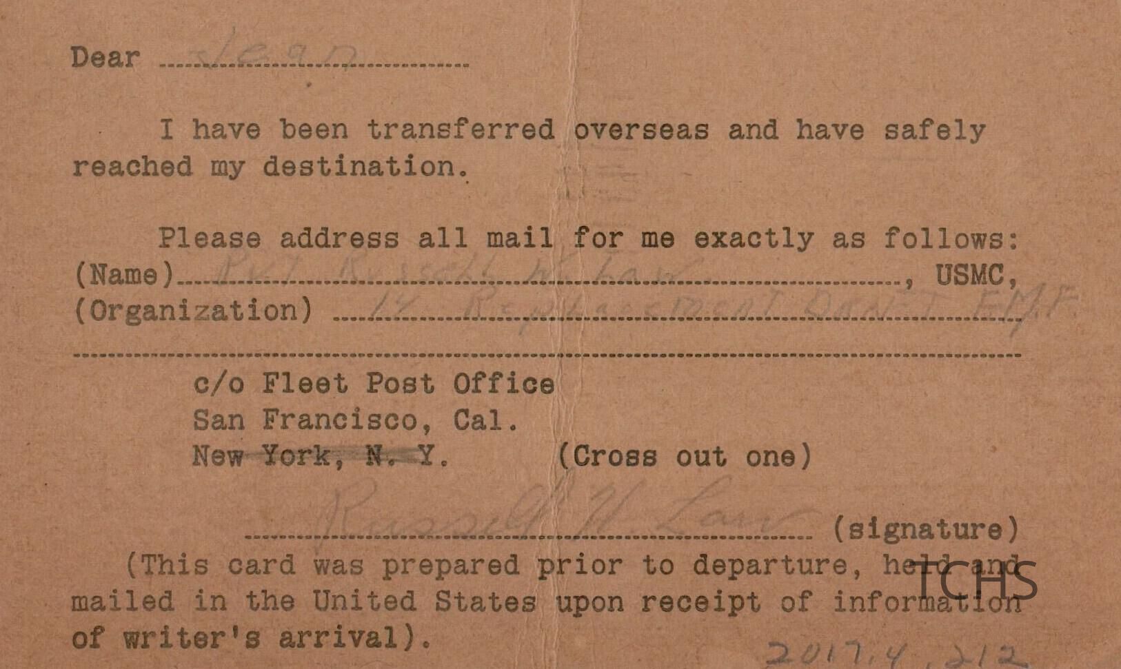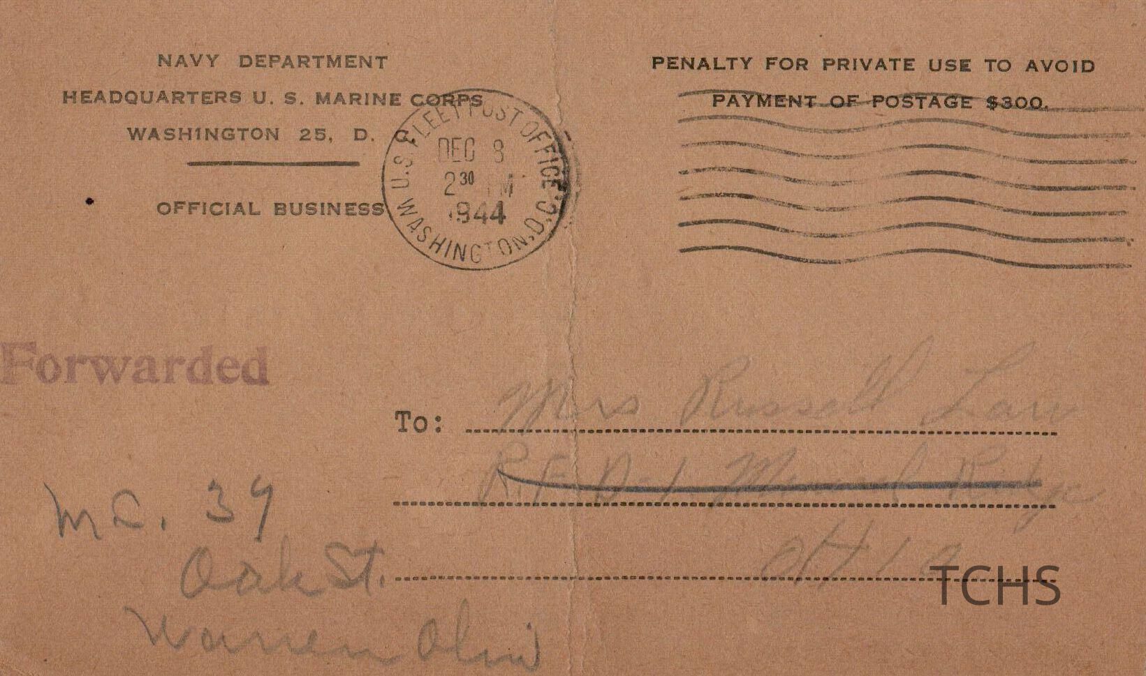 Law, Postcard 1944Entry/Object ID