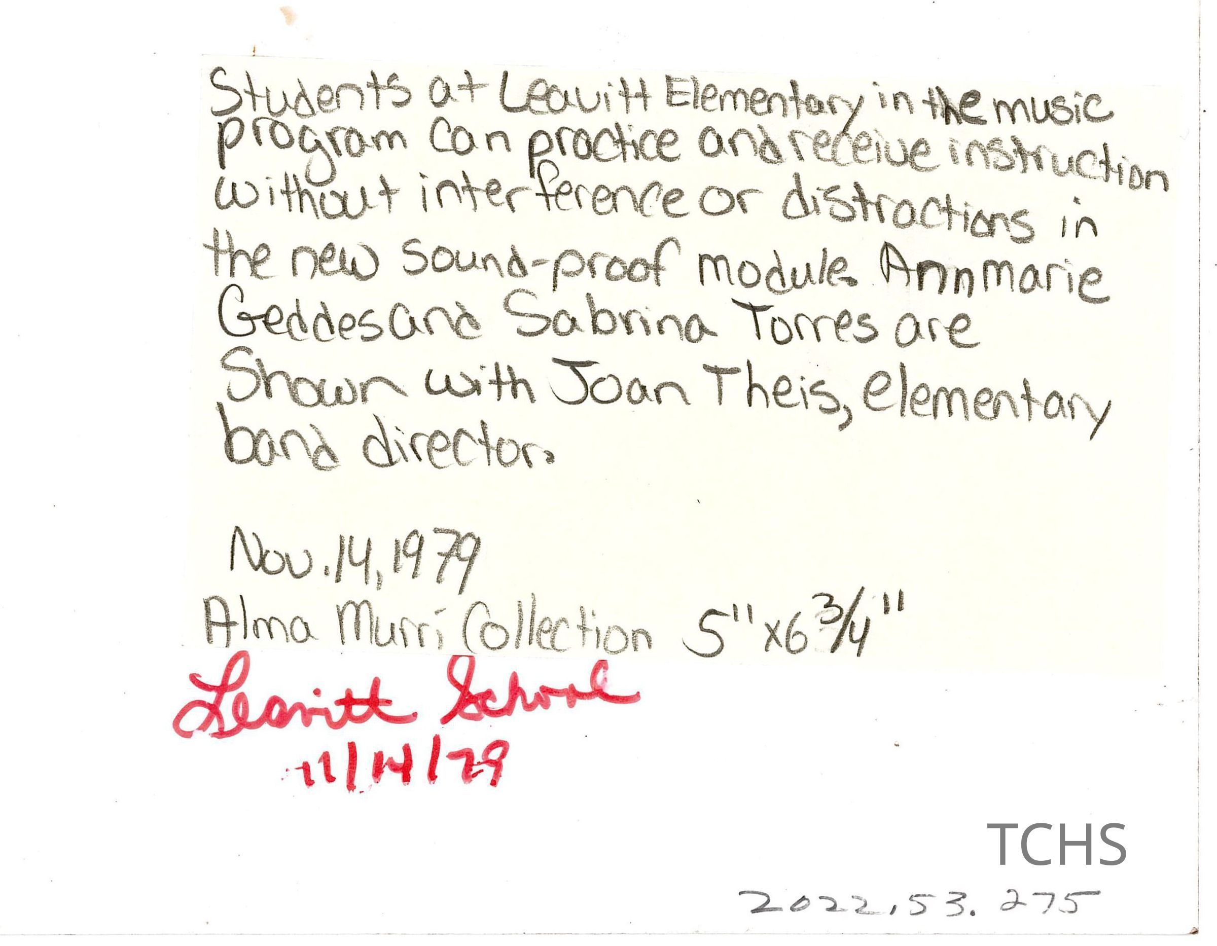 Leavitt Elementary, 1979Entry/Object ID