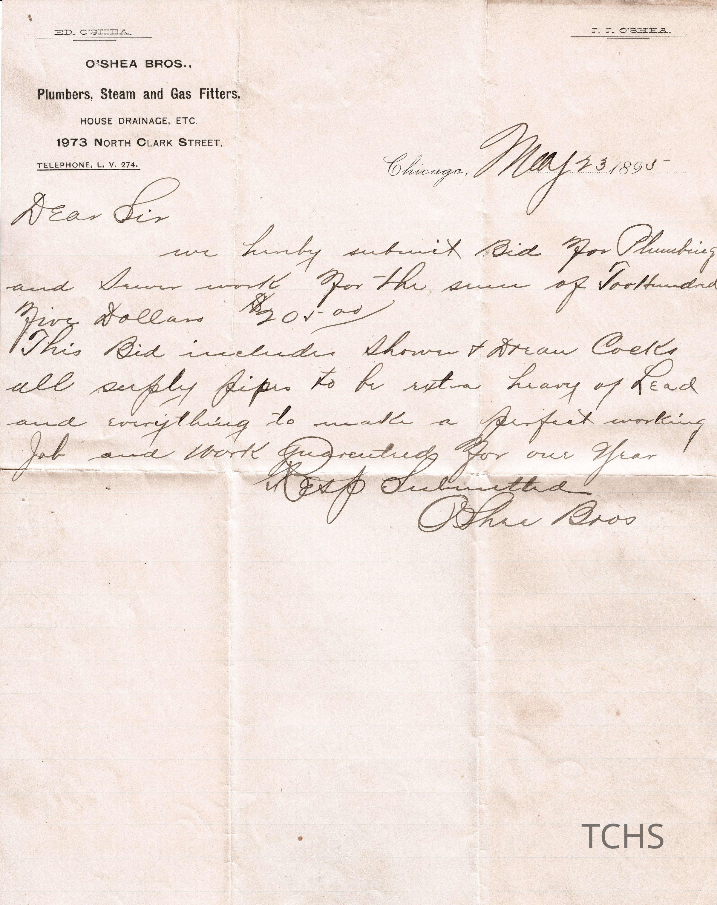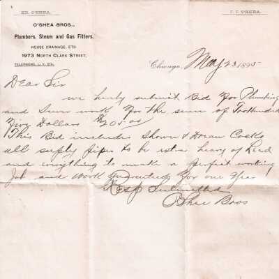 Letter from the O'Shea brothers to an unknown person, dated 1895