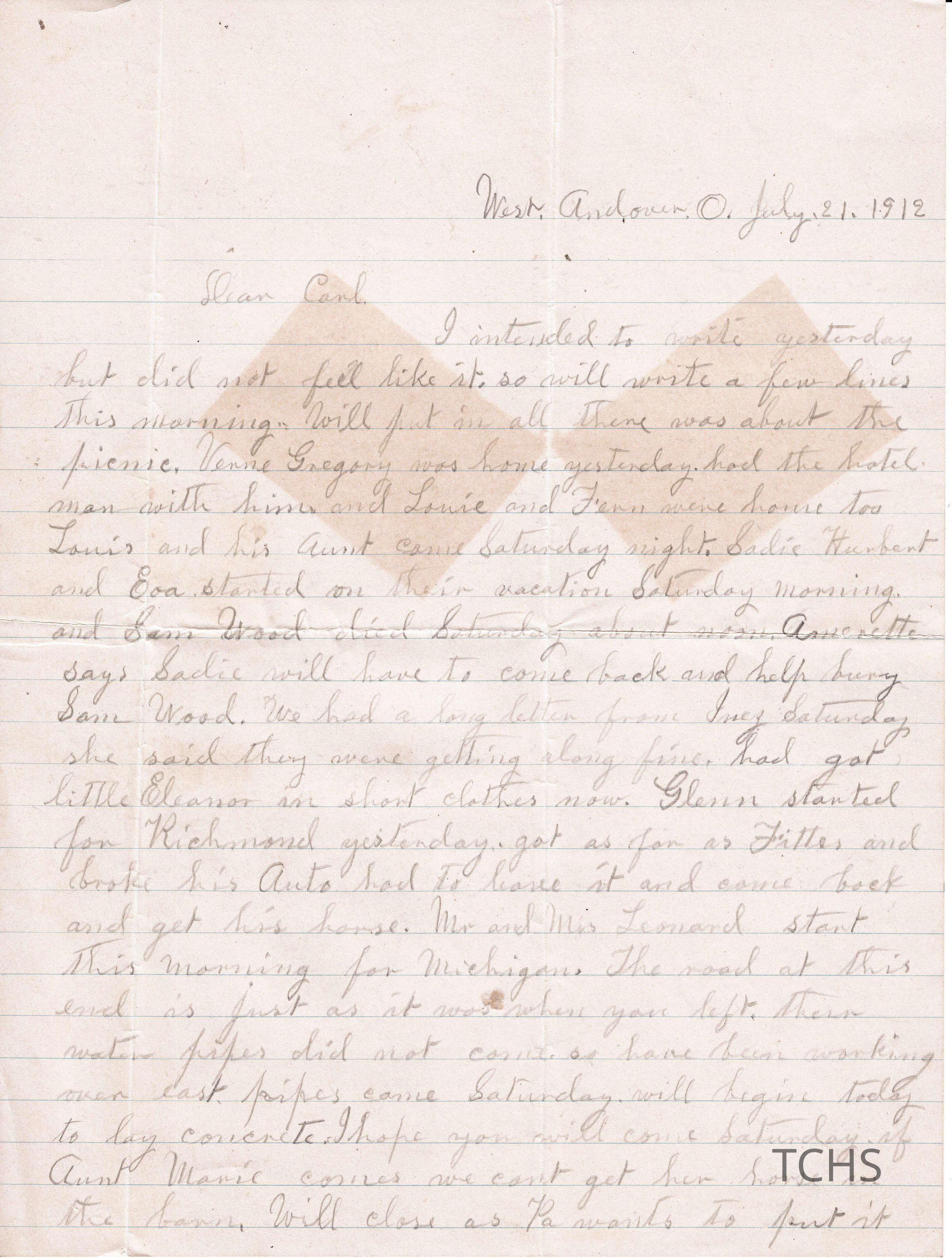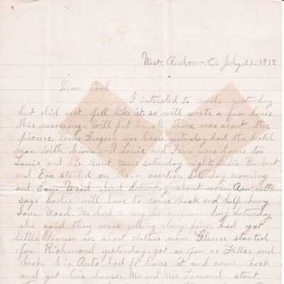 From Mrs. A.W. Griffing to A.C. Griffing, July 21, 1912Acquisition