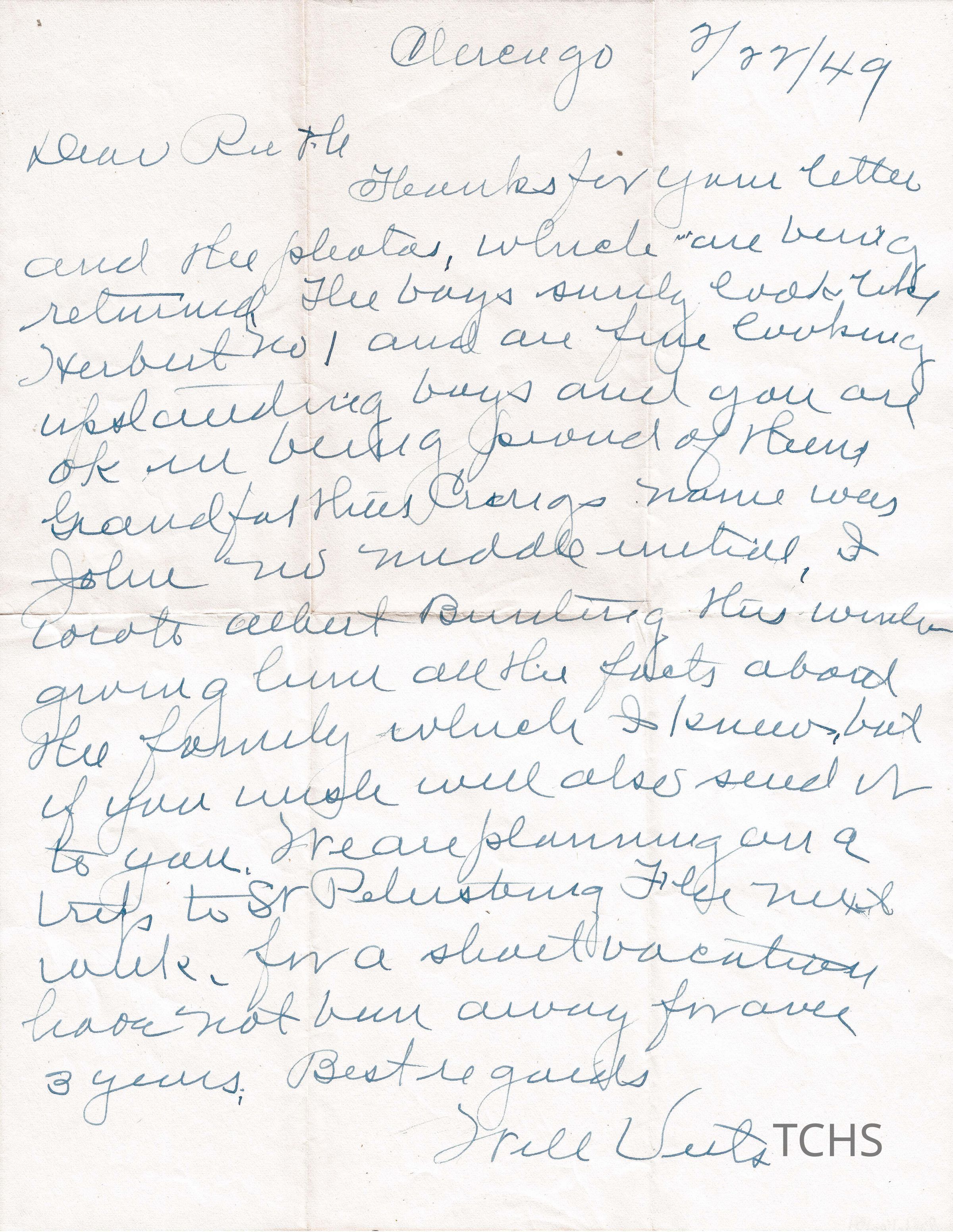 Letter, From Will Veits, 1949Entry/Object ID