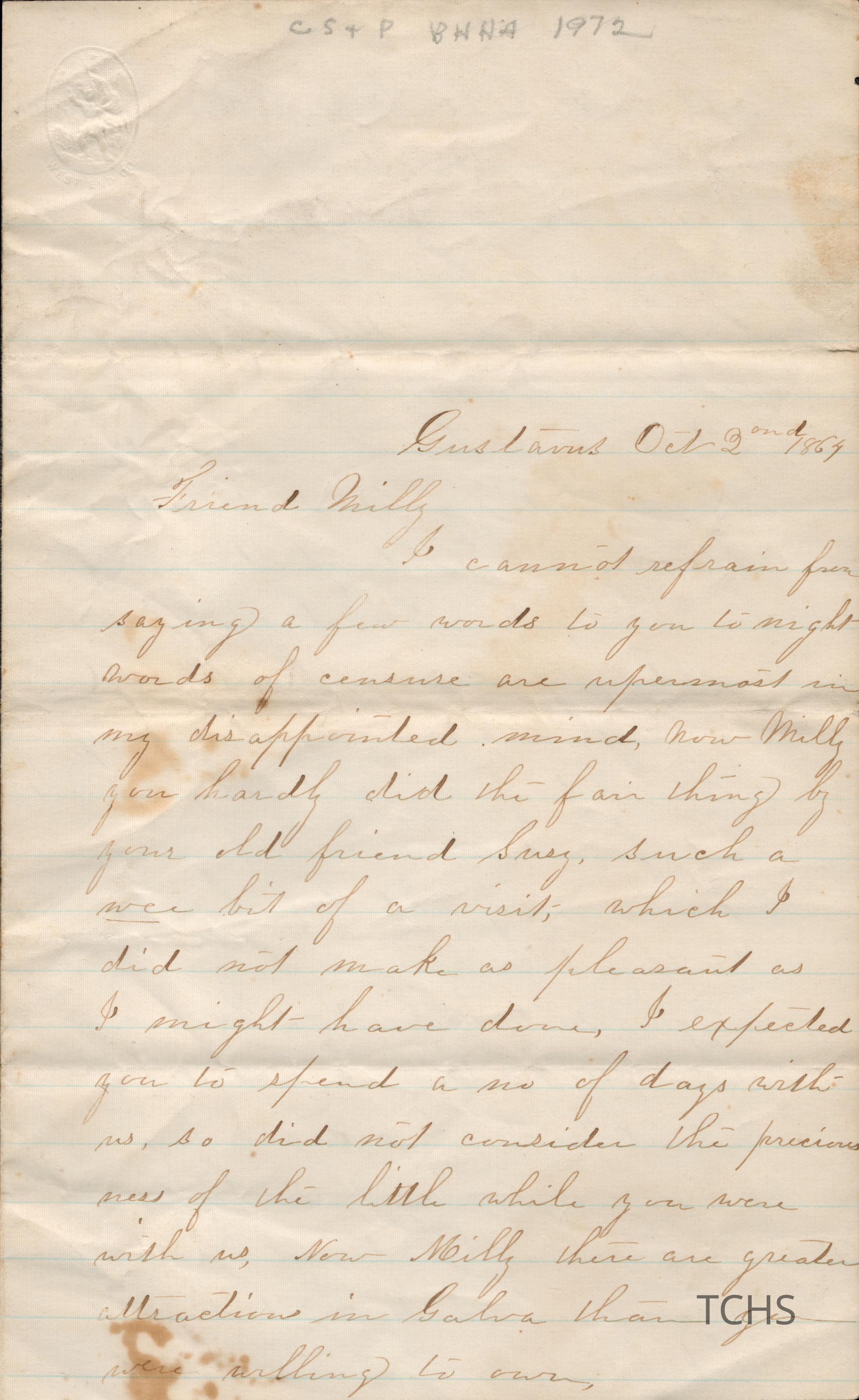 Linsley Letter, 1864Entry/Object ID