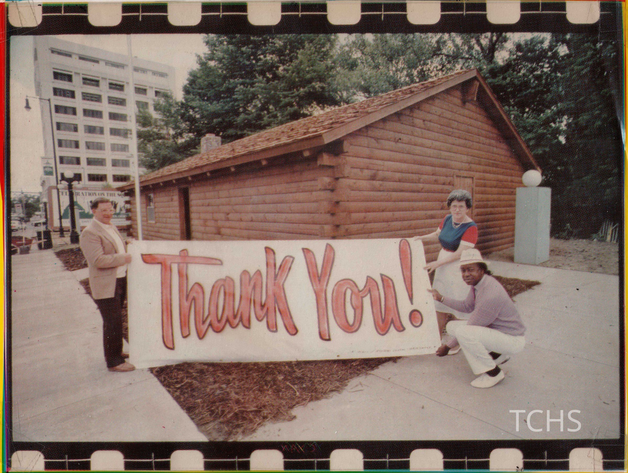 Log Cabin with Thank You Banner