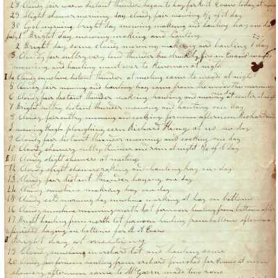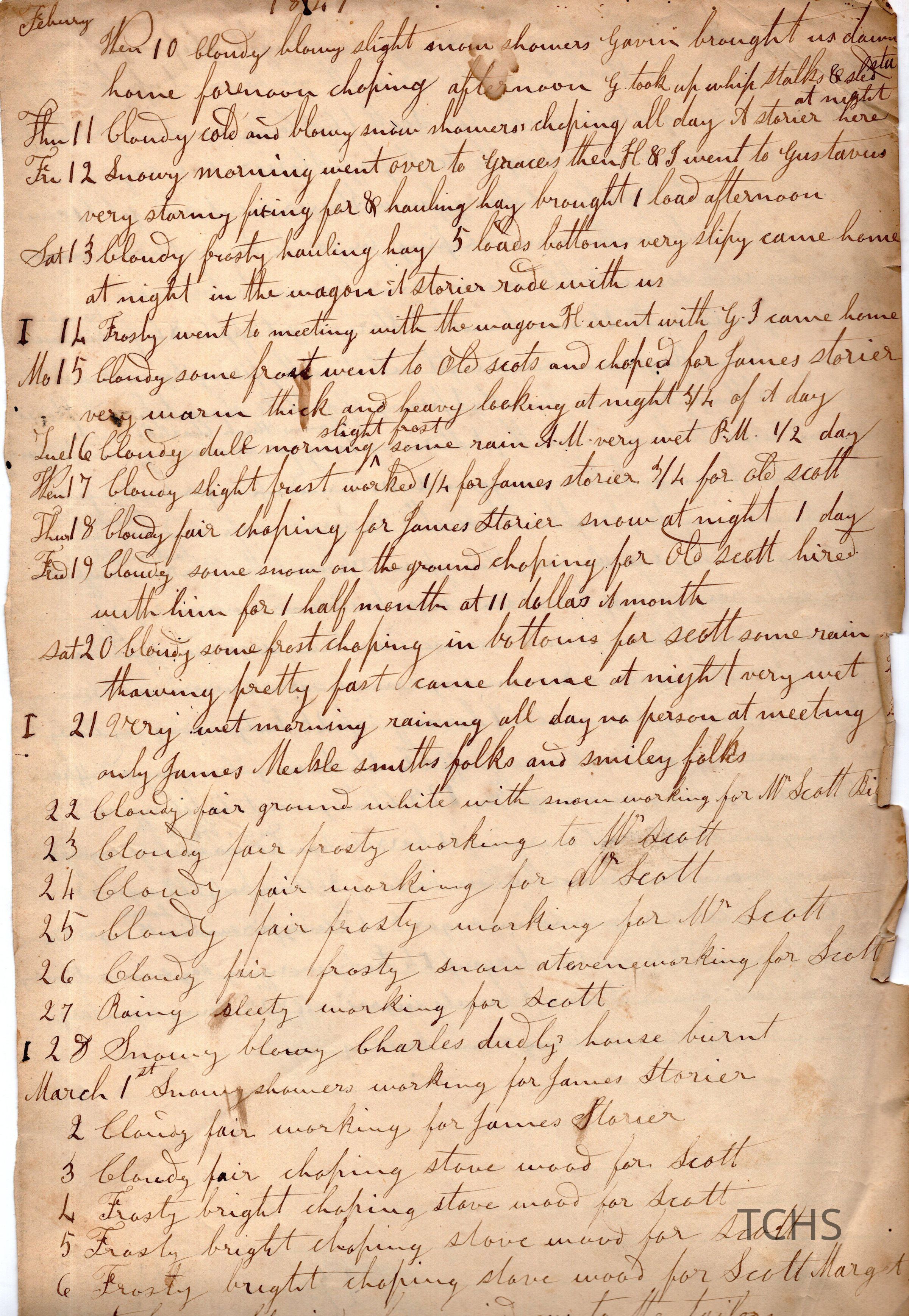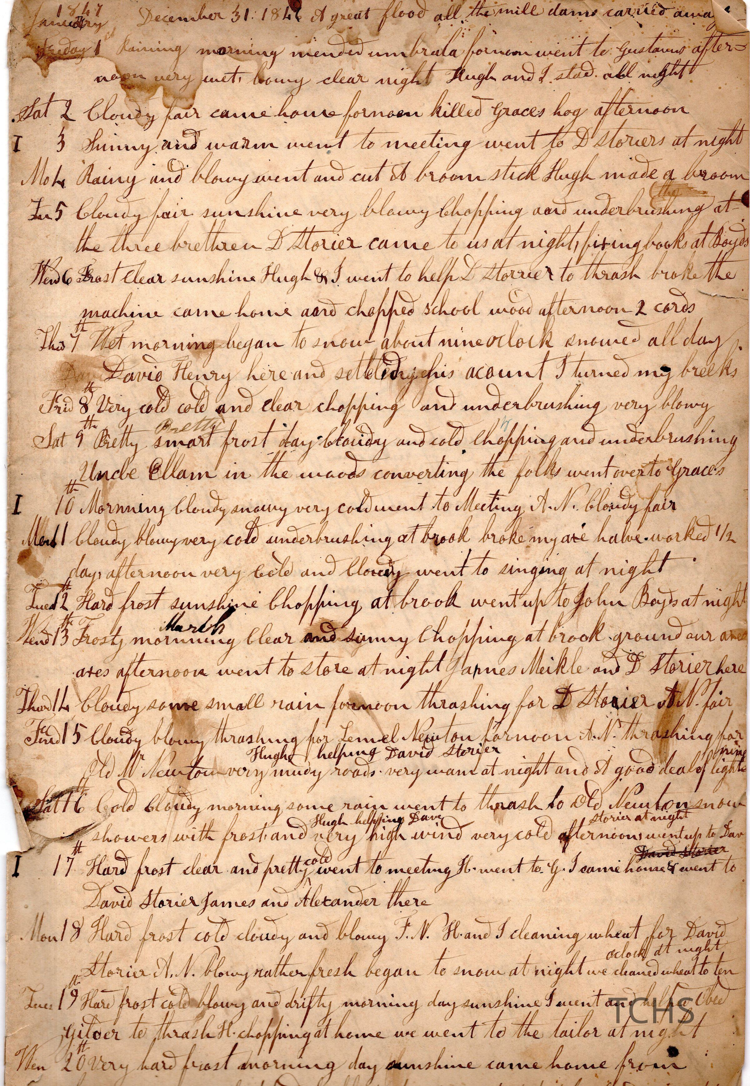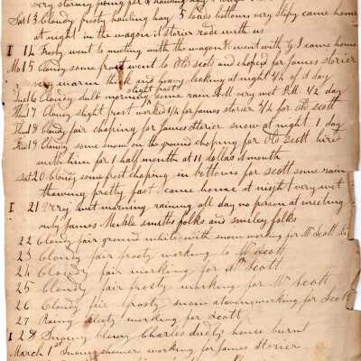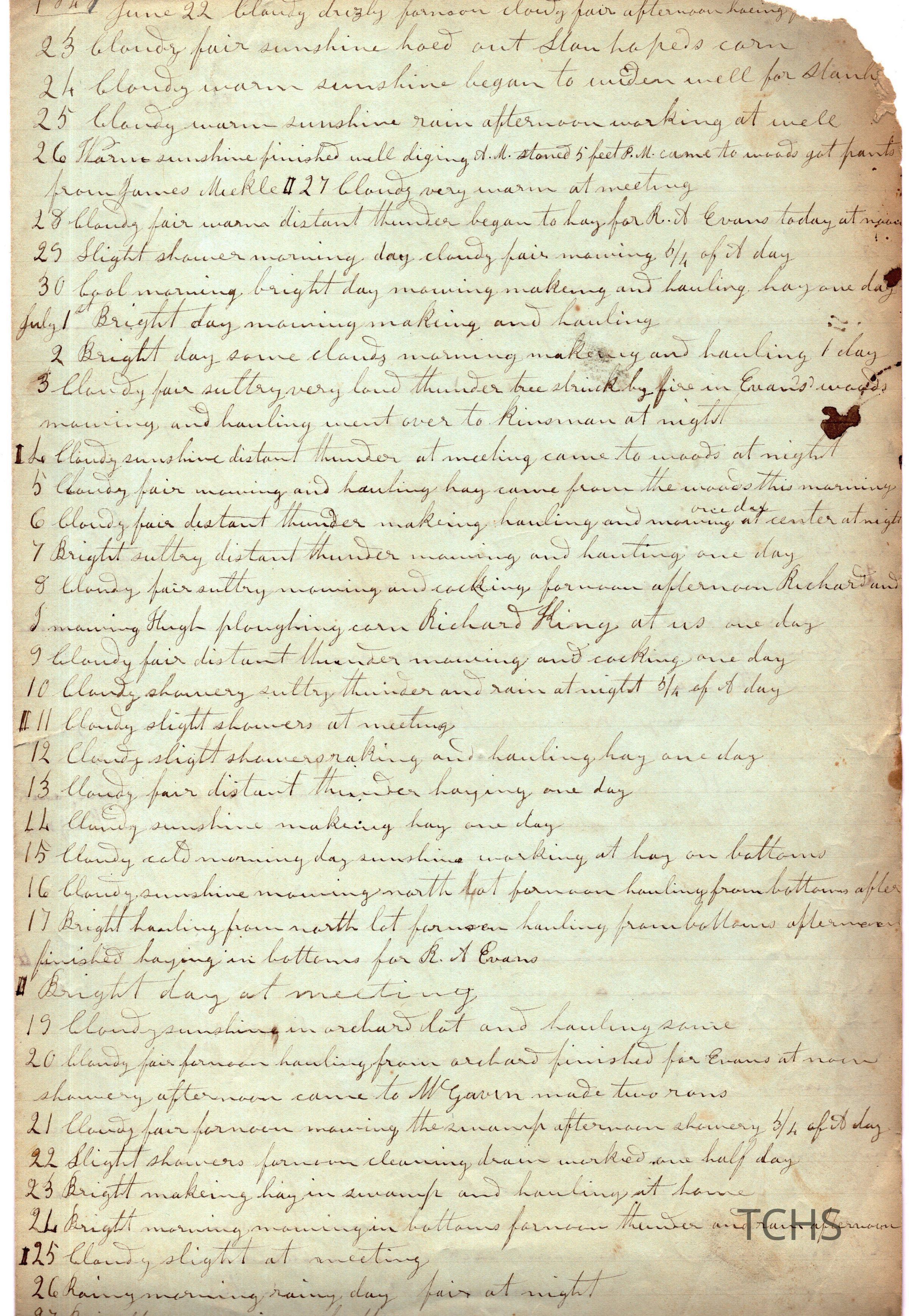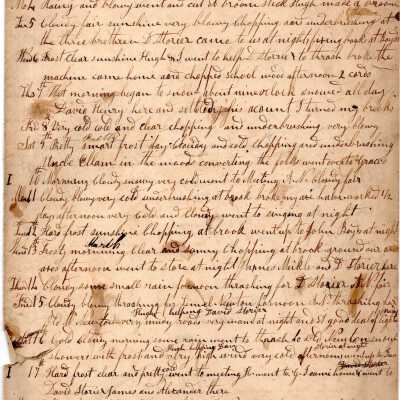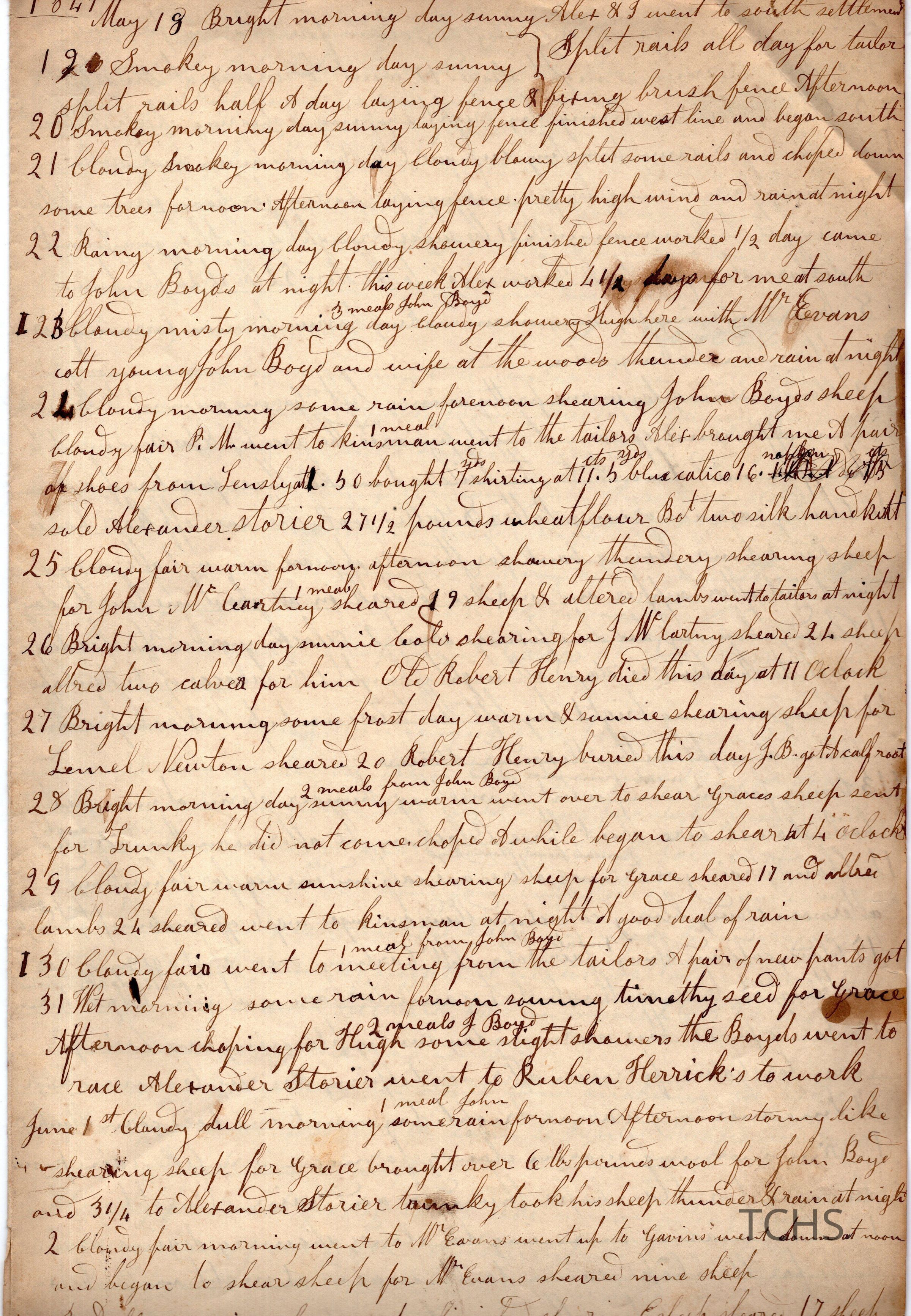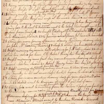 Five pages of daily logs. Content includes talk of daily farm chores like shearing sheep. Kinsman mentioned as well as names listed below.