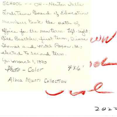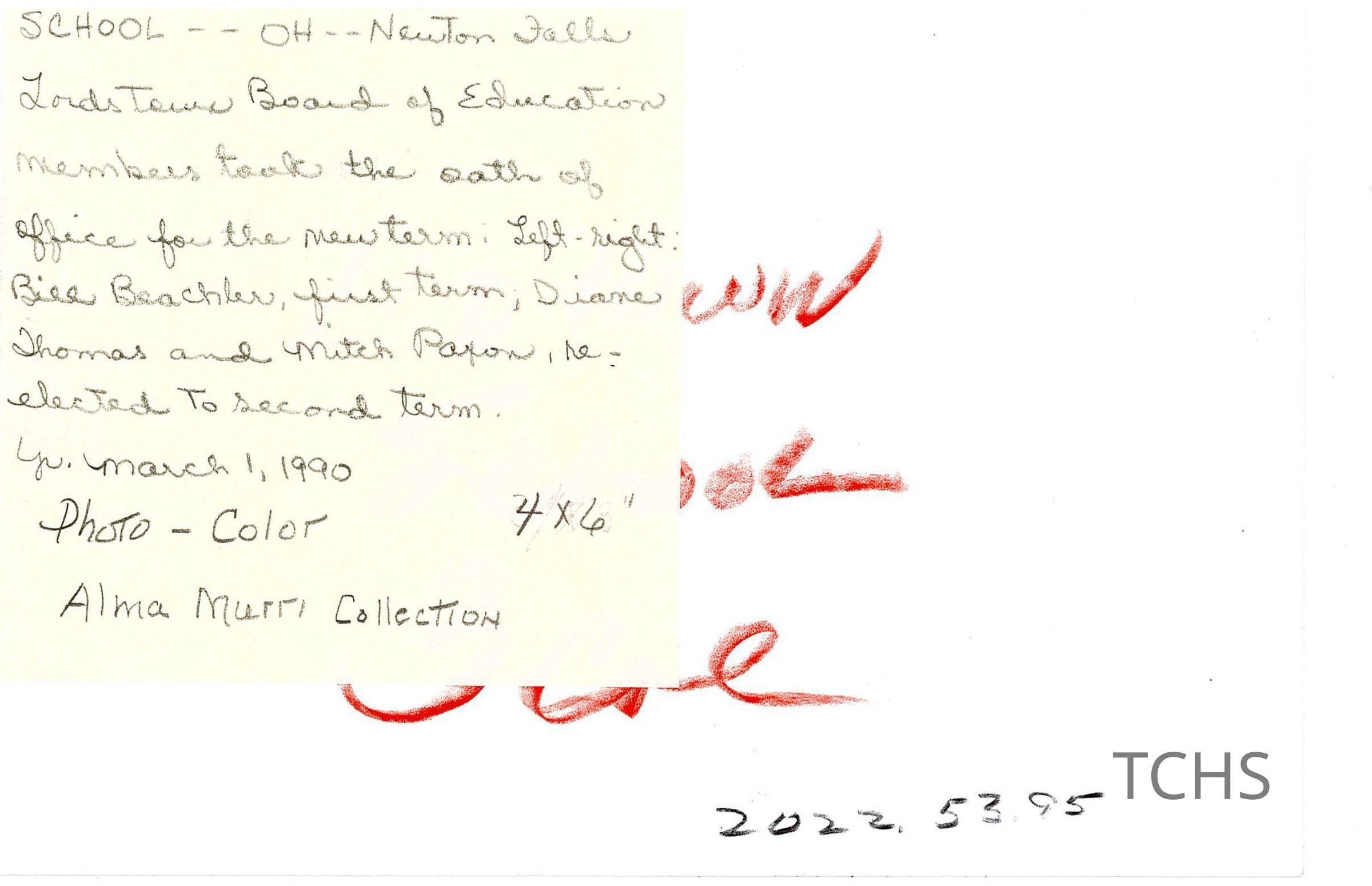 "Lordstown Board of Education members took the oath of office for the new term: left-right: Bill Beachler, first term, Diane Thomas and Mitch Paxon, re-elected to second term."
