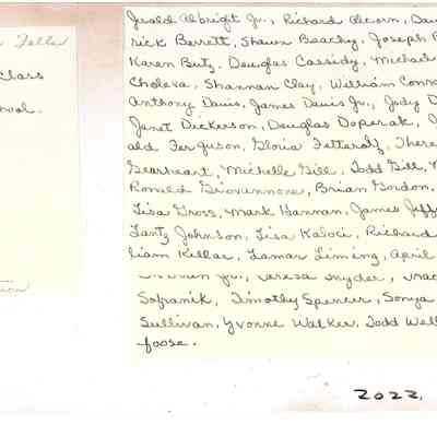 Albright, Jerald, Alcorn, Richard, Barker, David, Barrett, Patrick, Beachy, Shawn, Beatty, Joseph, Boggs, Alan, Butz, Karen, Cassidy, Douglas, Cassidy, Michael, Choleva, Deborah, Clay, Shannan, Conrad, William, Dalish, Darnell, Davis, Anthony, Davis, James, Davis, Jody, Davis, Julie, Dickerson, Janet, Doperak, Douglas, Dudgeon, Jill, Ferguson, Ronald, Fetteralf, Gloria, Frank, Theresa, Gearheart, Scott, Gill, Michelle, Gill, Todd, Gilmour, Michael, Giovannone, Ronald, Gordon, Brian, Gorsuch, David, Gross, Lisa, Hannan, Mark, Jeffreys, James, Jeffreys, Roy, Johnson, Lantz, Kaloci, Lisa, Kascsak, Richard, Kellar, William, Liming, Lamar, Marino, April, Massey, James, McAvoy, Gary, McCombs, Dawn, McEluee, Tricia, Metz, Shawnita, Morrison, Donald, Moyers, James, Nesbit, Jennifer, Ochsenbine, Larry, Pallante, Ralph, Patrick, Adam, Pauley, Philip, Pawlik, Paulette, Pelo, Iva, Prinkey, Jeffrey, Radtka, Ronald, Reid, Barbara, Reider, Todd, Retherford, Wendi, Rice, Larry, Salmon, Jack, Seiple, Patrick, Skovan, Richard, Snyder, Teresa, Snyder, Tracie, Sofranik, Steve, Spencer, Timothy, Starr, Sonya, Sullivan, Michael, Walker, Yvonne, Wells, Todd, Zickefoose, Michael