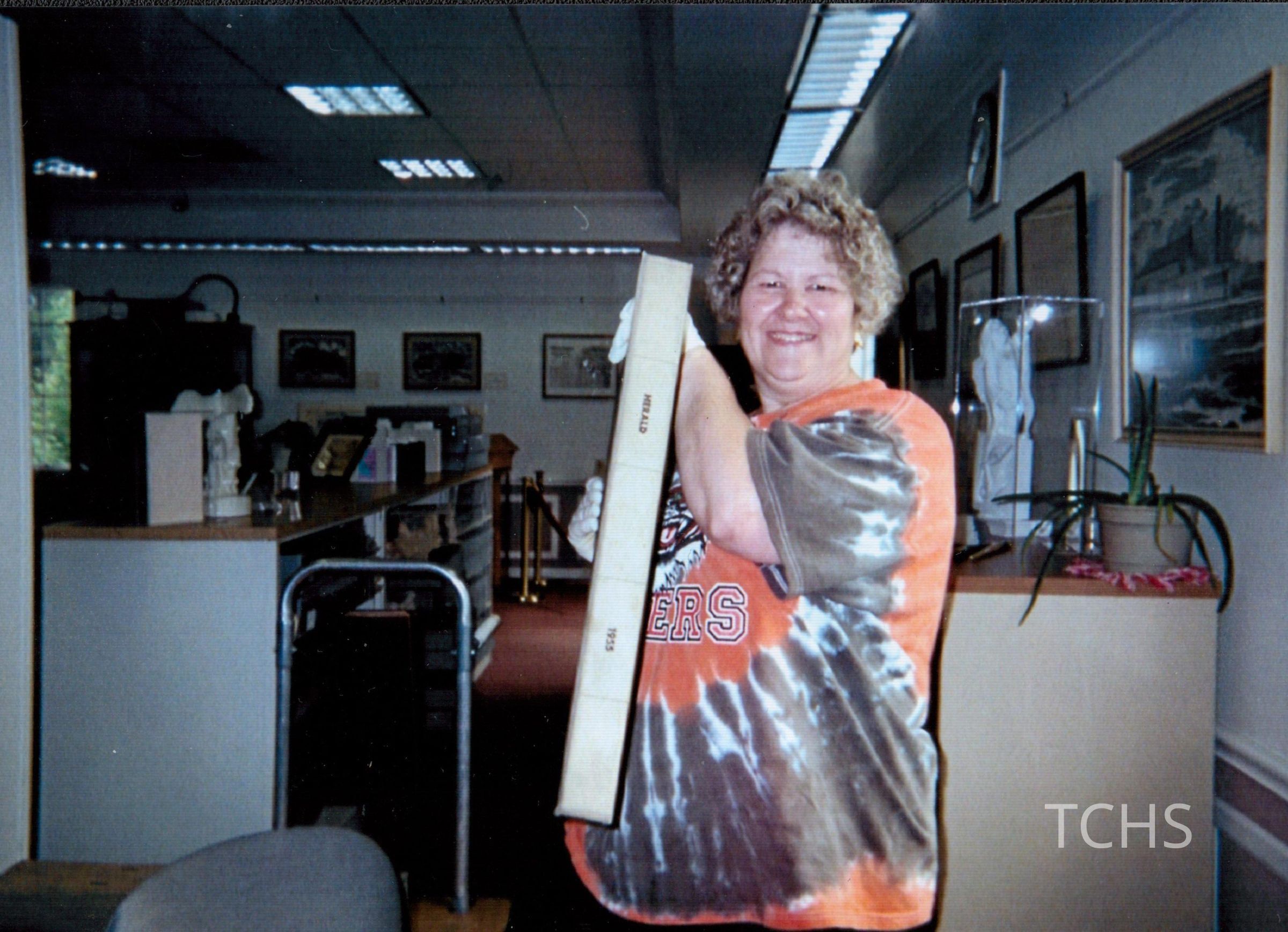 Mary Lou O'Lear working with archives at the Newton Falls Public Library.