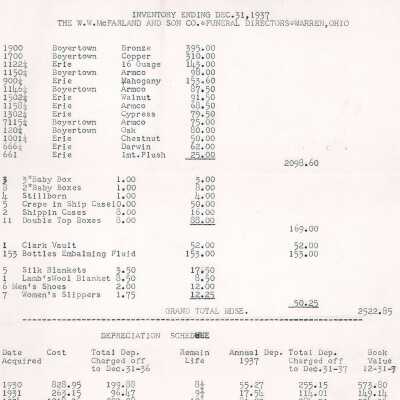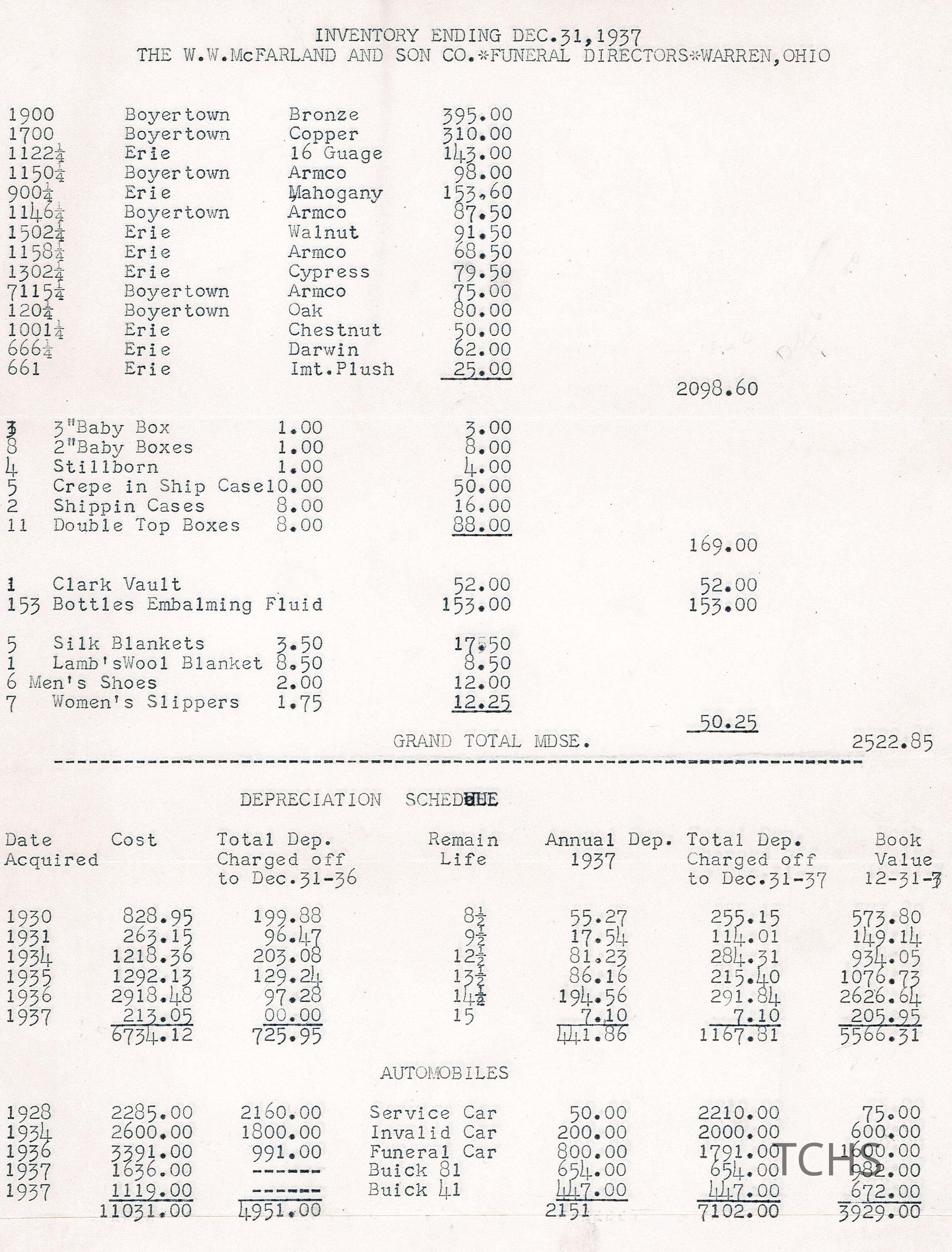 McFarland Funeral Home Inventory, 1937Entry/Object ID