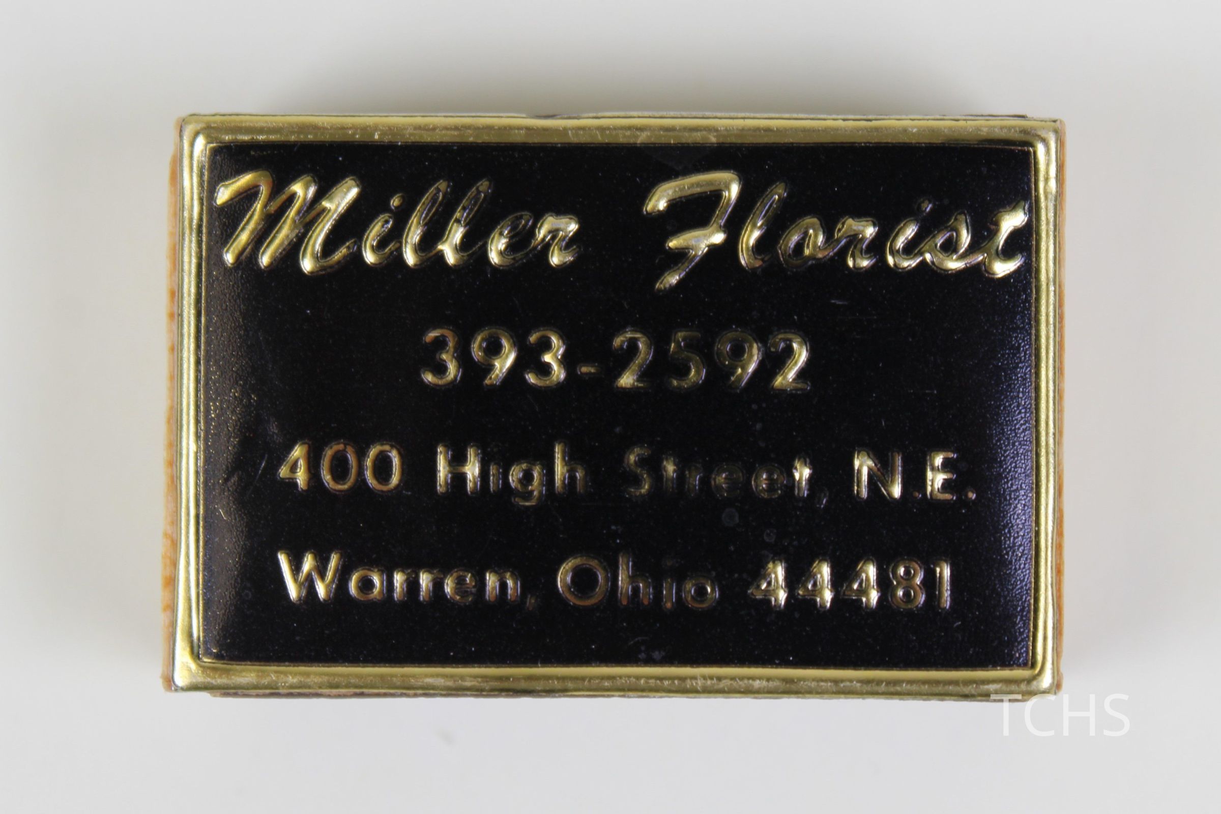 A matchbox from the Miller Florist of Warren, Ohio.Acquisition