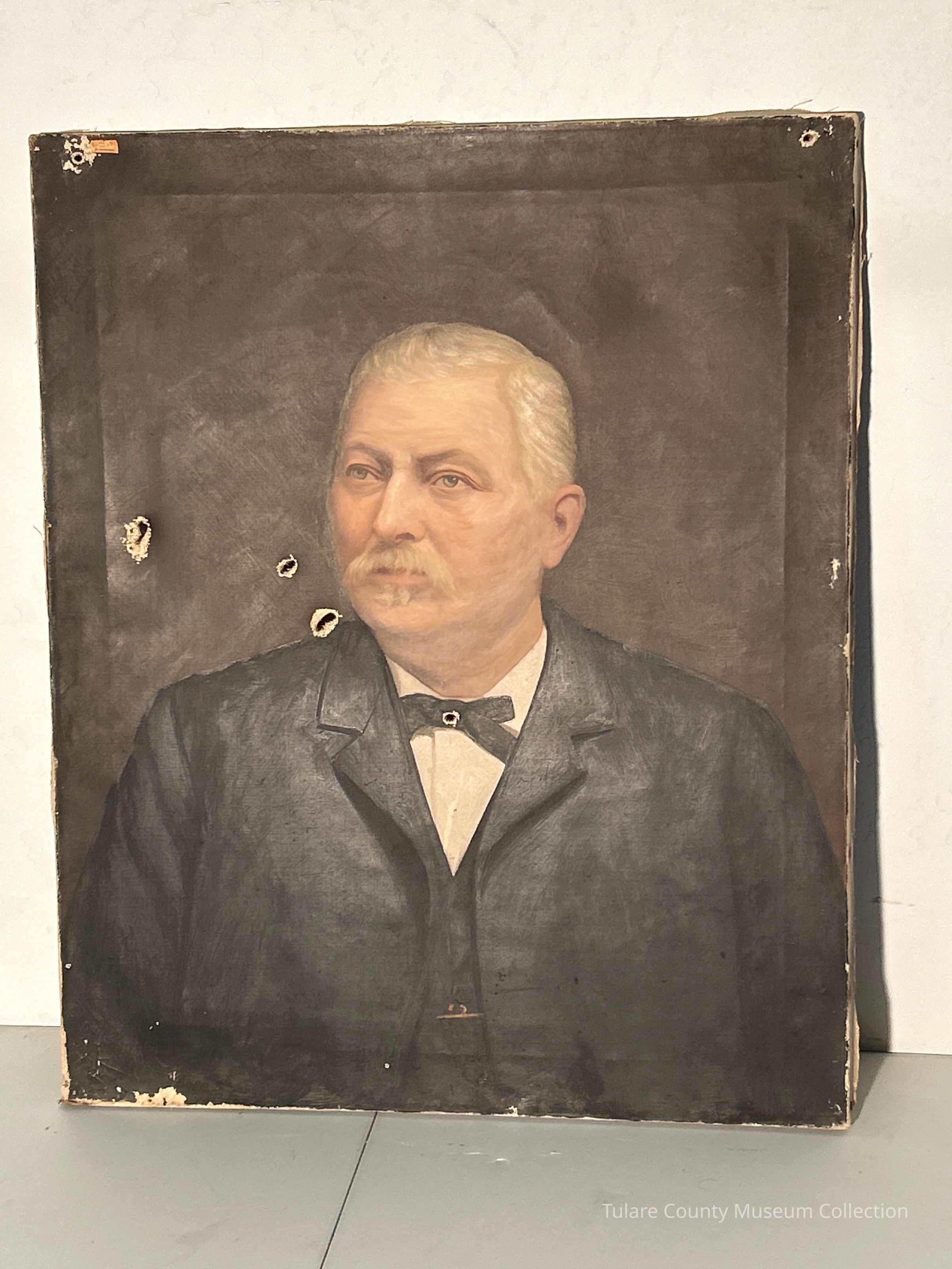 Painting of A. O. Thorns of Visalia. Mr. thorns came to California in the early 1850s, he was superintendent of the butterfield stage coach with their office located about where the Togni stationary store now stands. He was later manger of the palace hotel. Thorns was born at Fryeburg on the stage line between New Hampshire and Vermont on August 17th 1828Lexicon