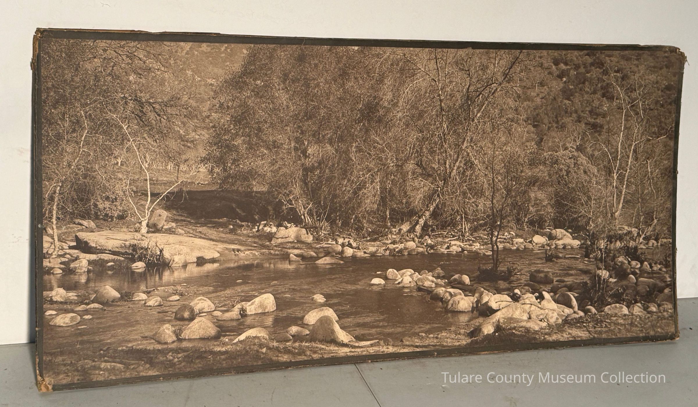 Black and white landscape photograph of rocky stream. Part of the Tulare CO. Collection #29.
