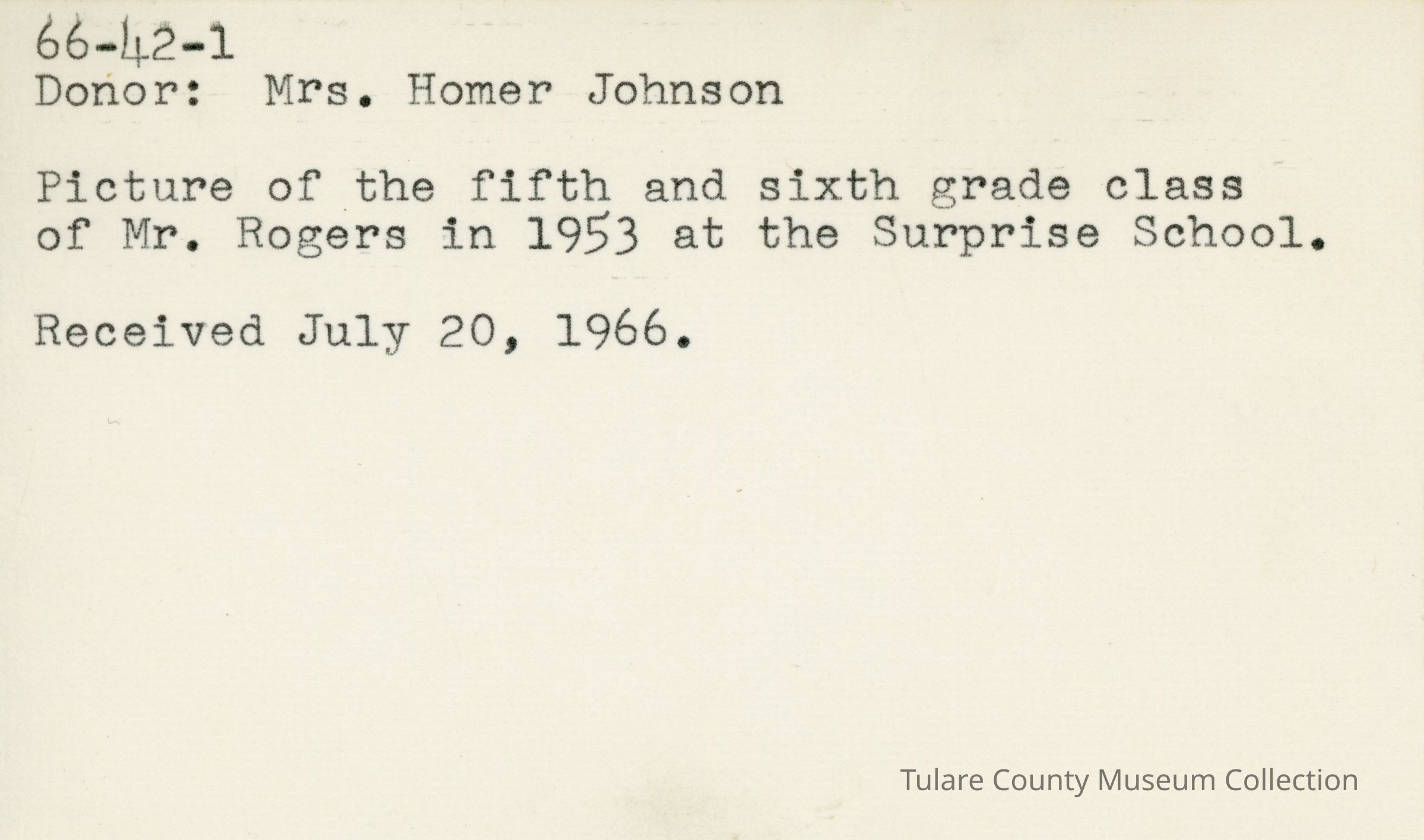 Picture of the fifth and sixth grade class of Mr. Rogers in 1953 at the Surprise School.