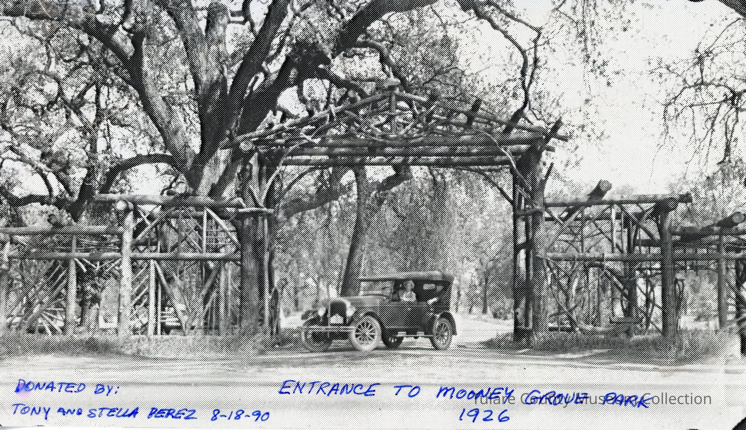 1 Copy of photo, taken in 1926 of entrance of Mooney Grove