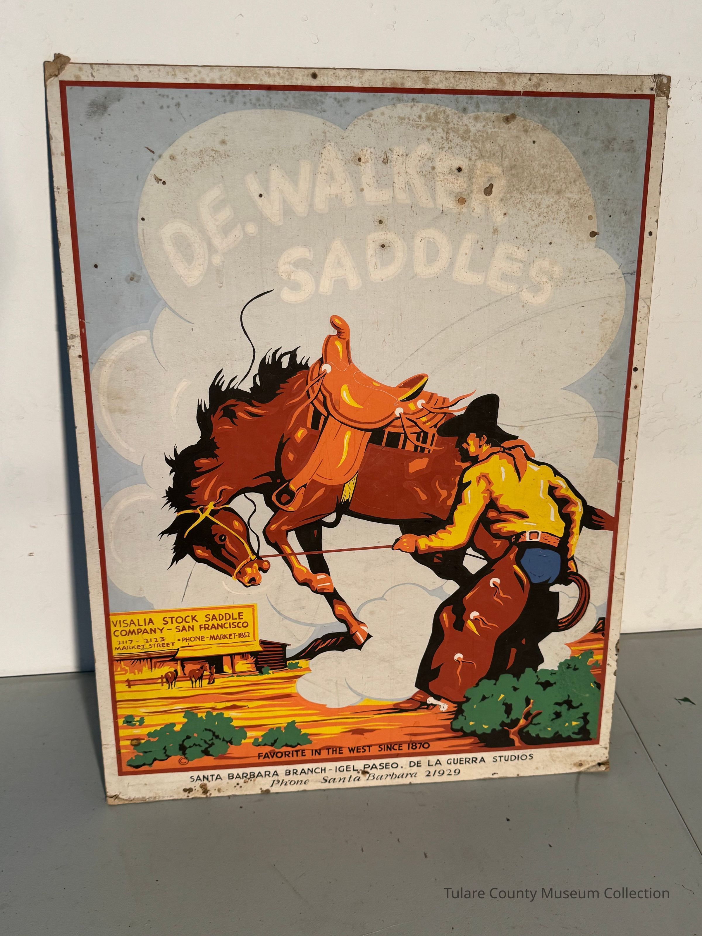 Poster titled "D.E. Walker Saddles" Santa Barbara branch. Accession changed from 1960.47.3.