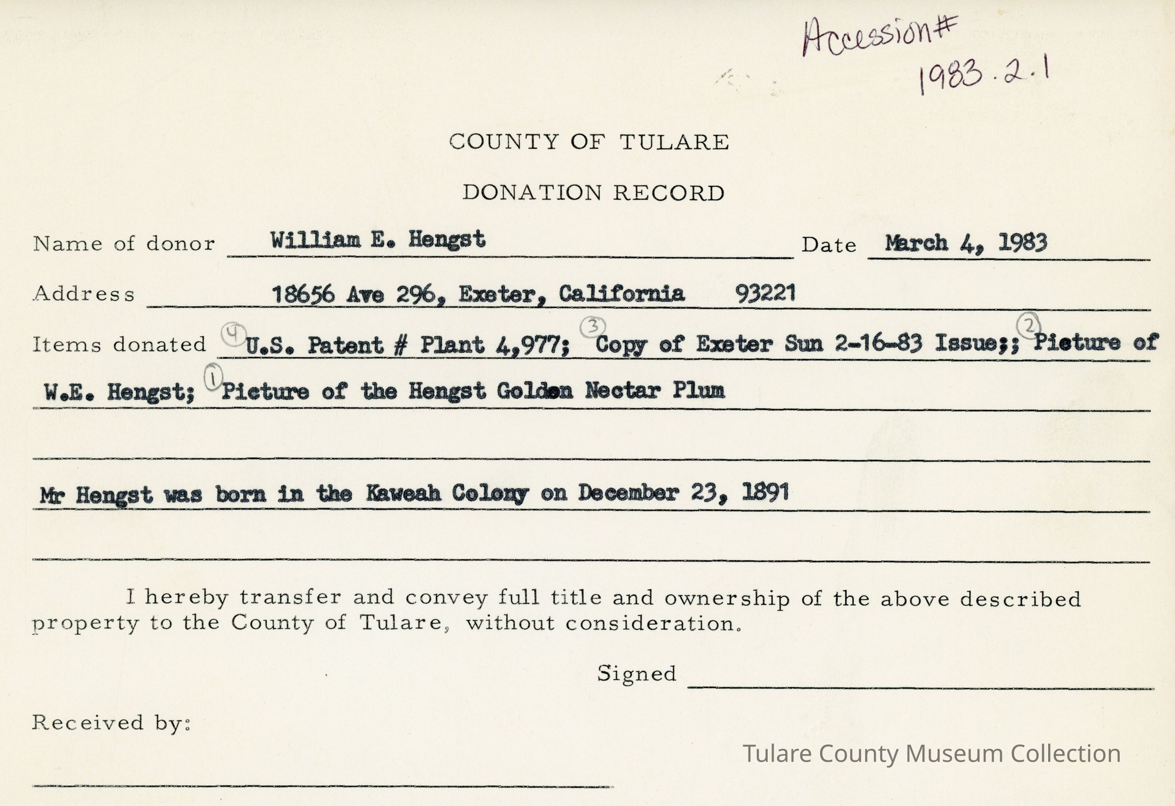(1) Picture of W.E. Hengst
