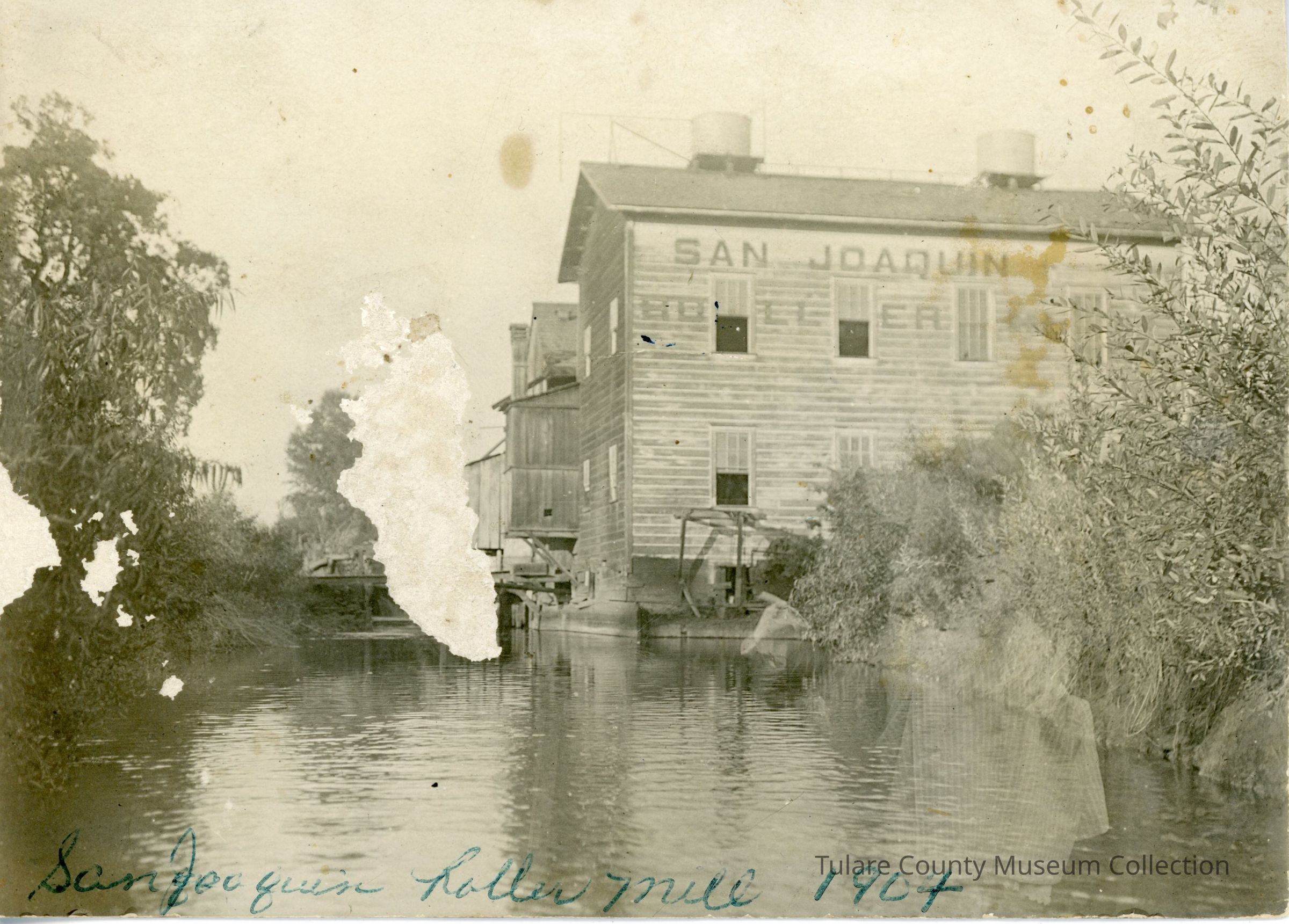 (1) Picture of the San Joaquin Roller Mill about 1904-1906. South west corner-looking north easterly. Mr. Herman Bohnert is the son of the last operator of the Mill, Mr. August Bohnert, who operated the Mill from 1905-1913.Lexicon