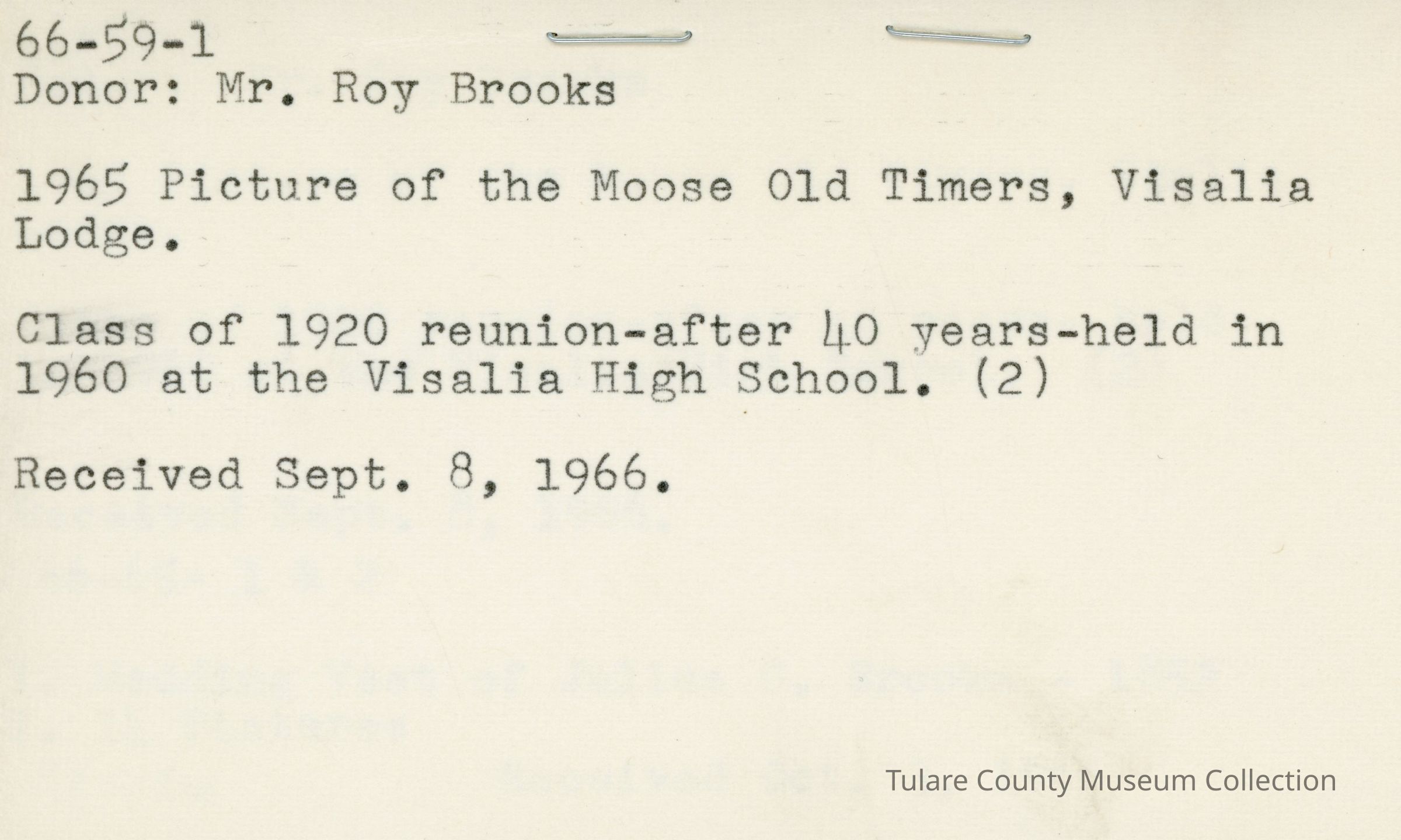 Class of 1920 reunion-after 40 years- held in 1960 at the Visalia High School