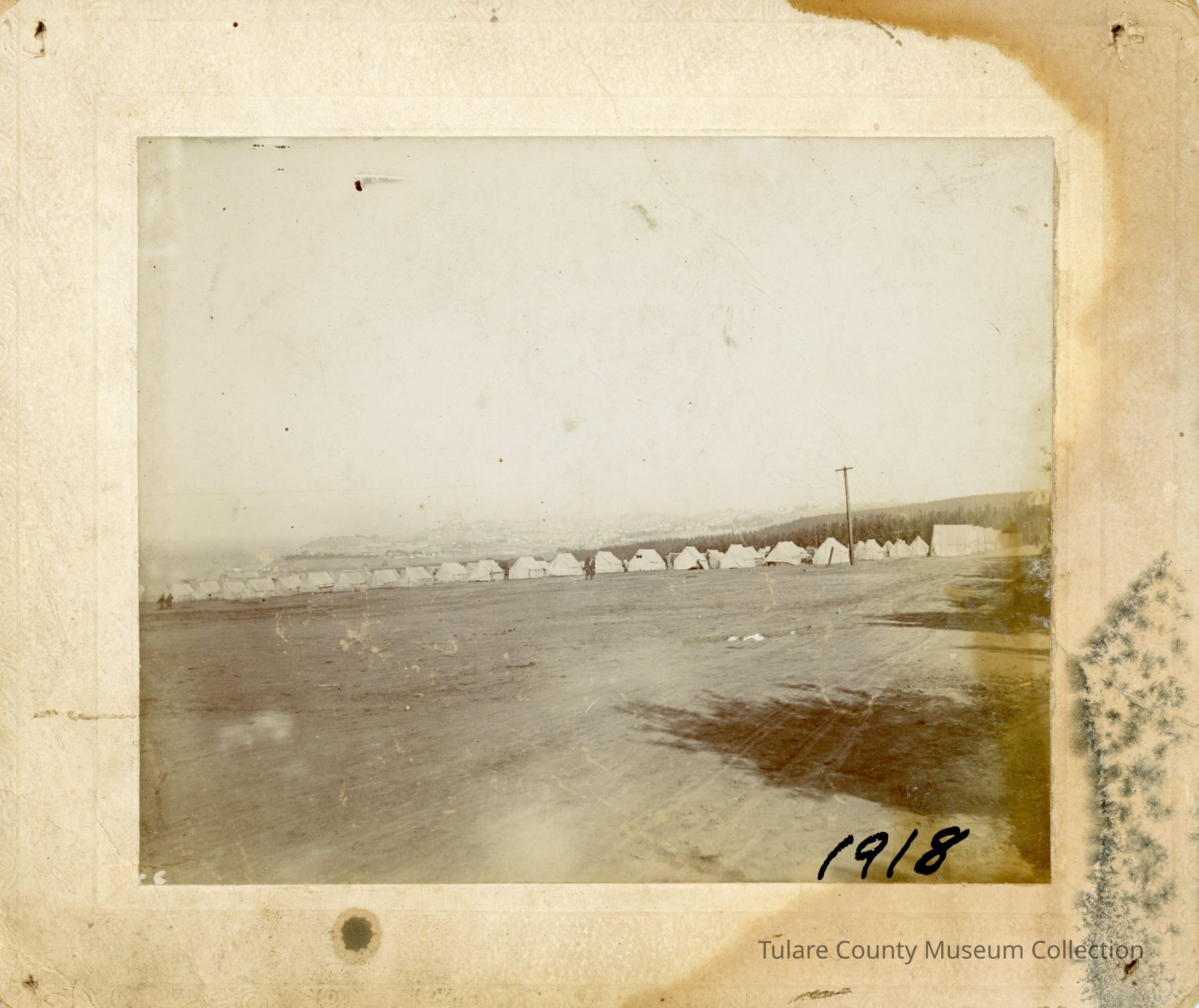 Picture of an army encampment. The photo is dated 1918 in black marker on the bottom right corner of the photo.