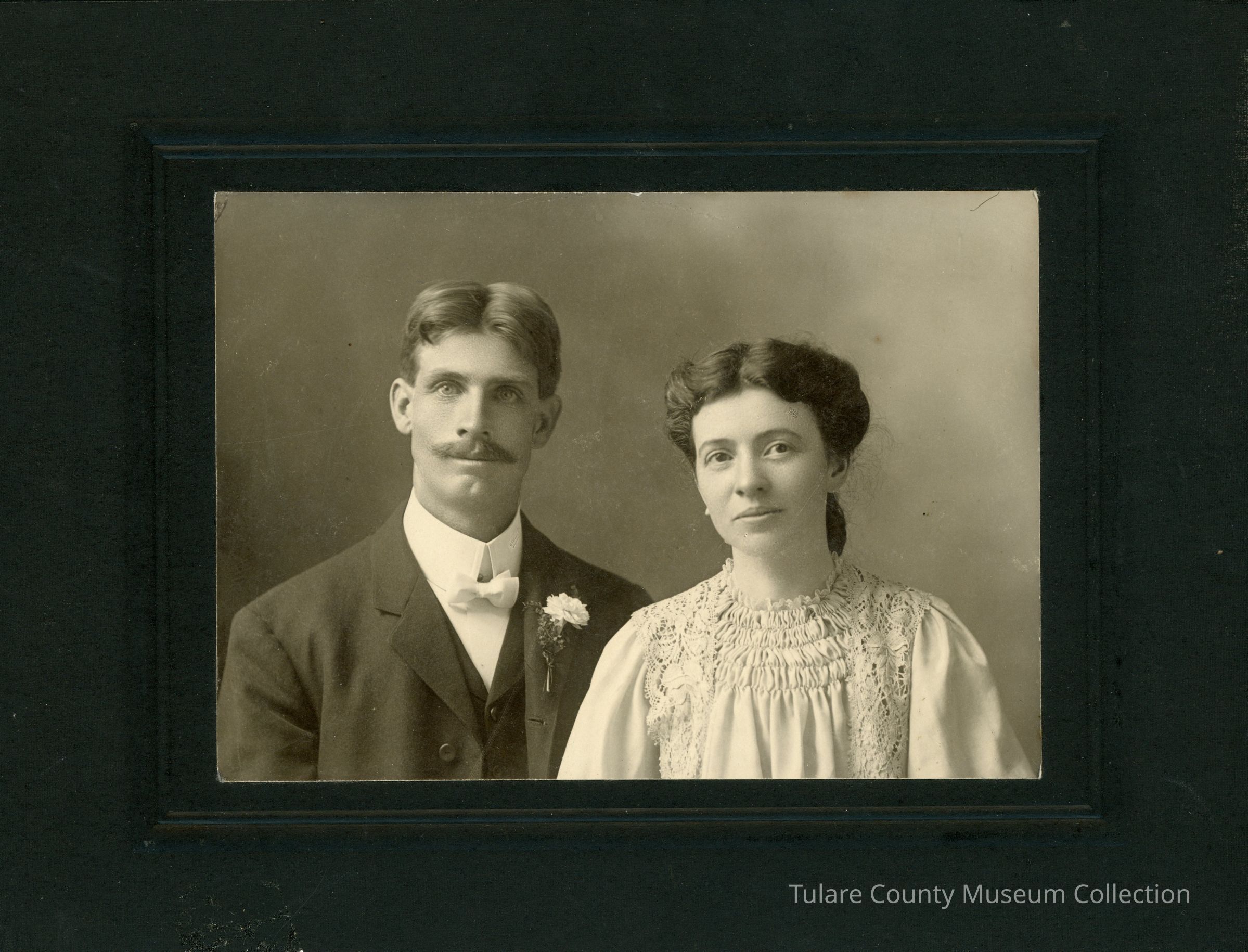 (1) Formal portrait of a young couple Will and Ida Purdy on their wedding day.
