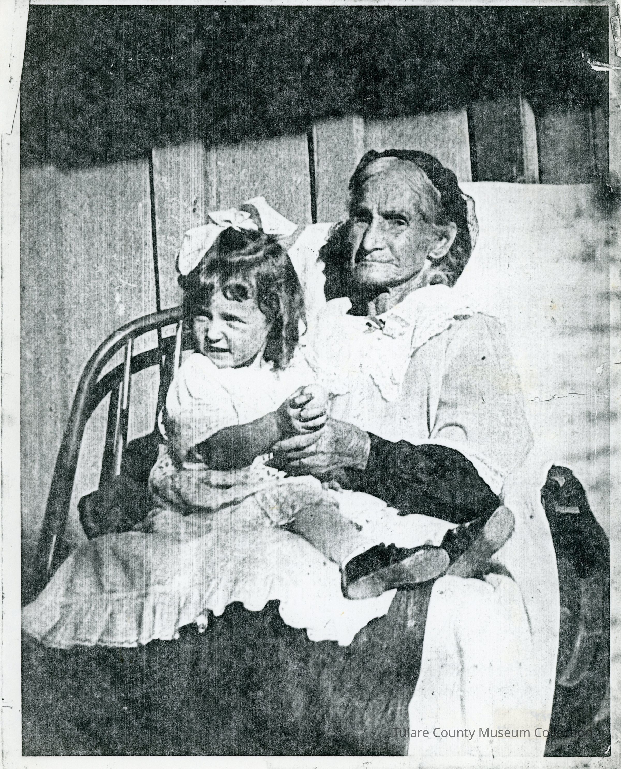 (1) Photocopy of a larger photo of Irene Louise Eward (child) sitting in lap of Elizabeth O'Connor (great grandmother on mother's side) on a porch.