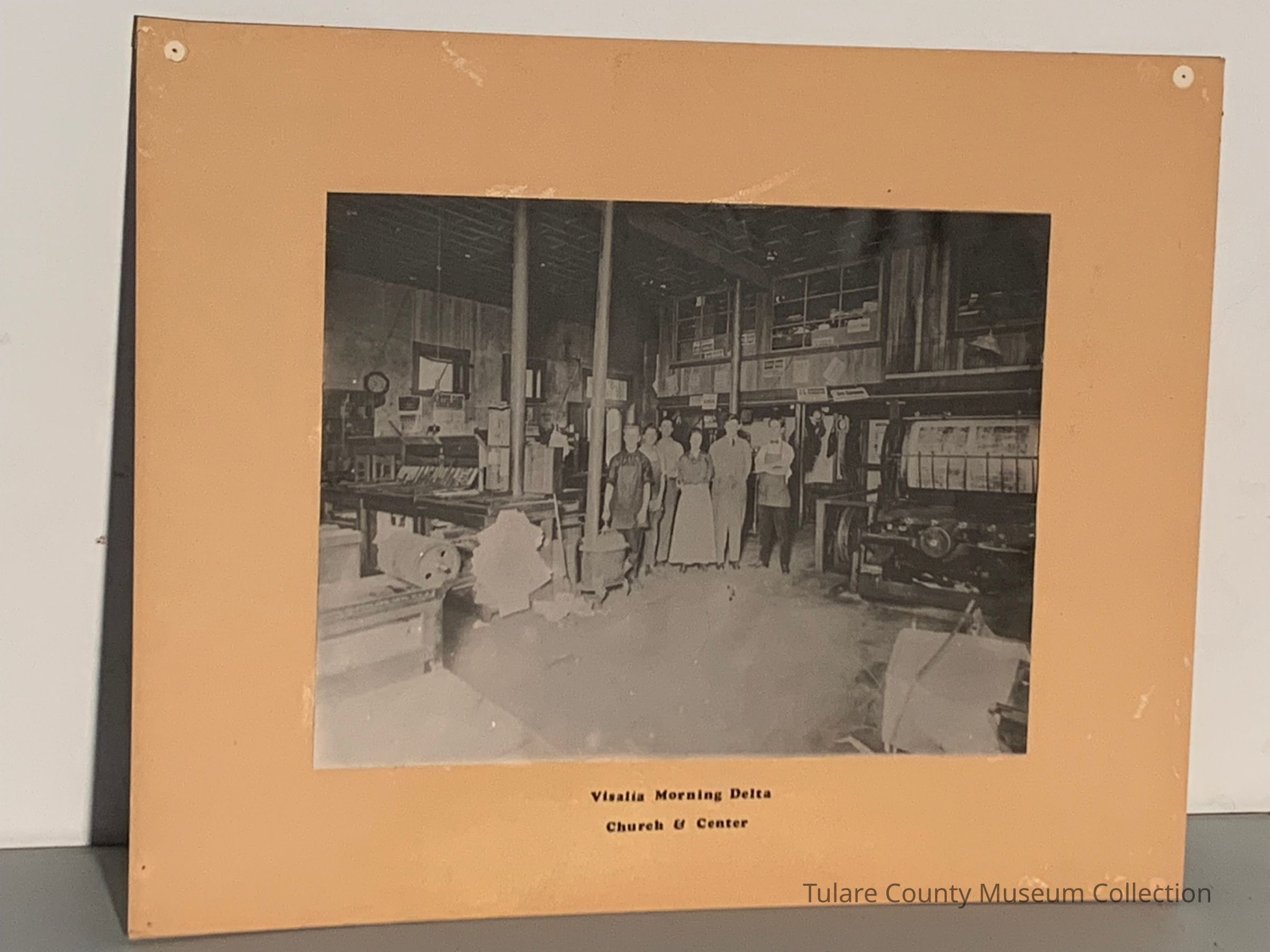 Visalia Morning Delta on Church and Center. Photograph 1900-1930 used in Visalia Bi-Centennial display