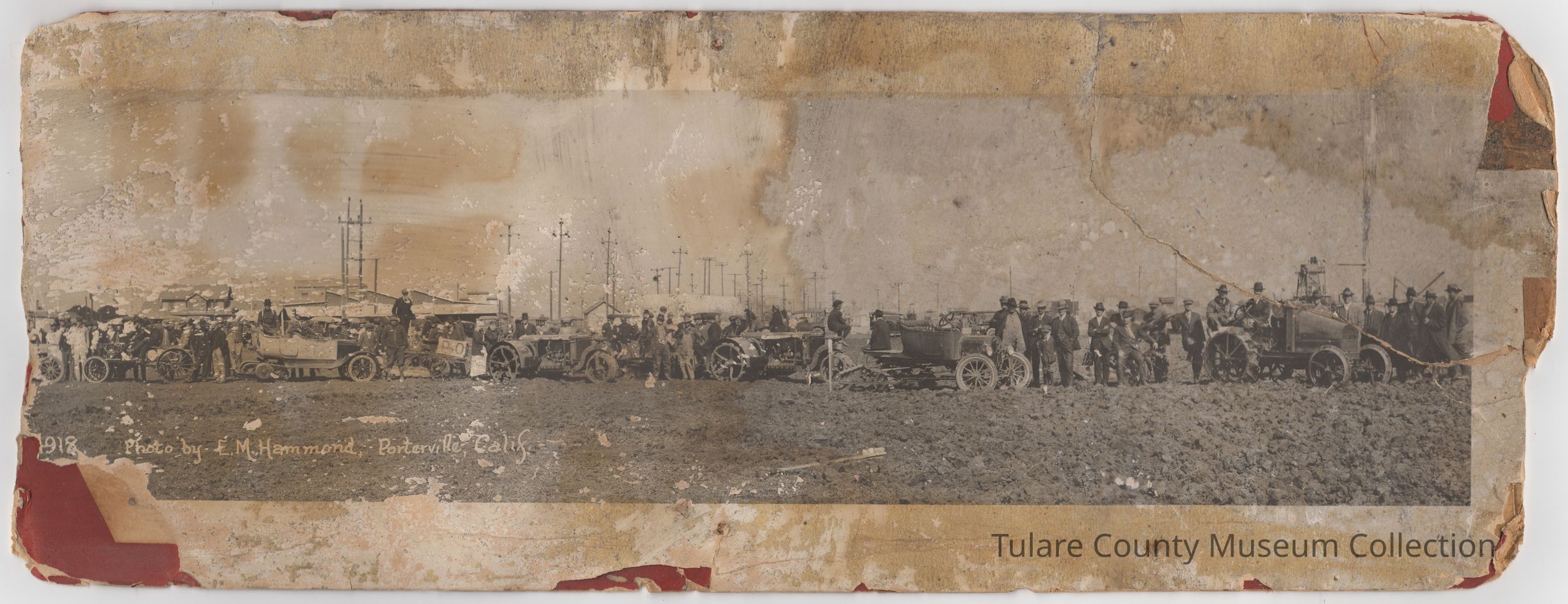 Digital copy of a panoramic photo taken of a Tractor Demonstration in Strathmore, CA on April 12, 1918. (Photo taken by E.M. Hammond of Porterville, CA)