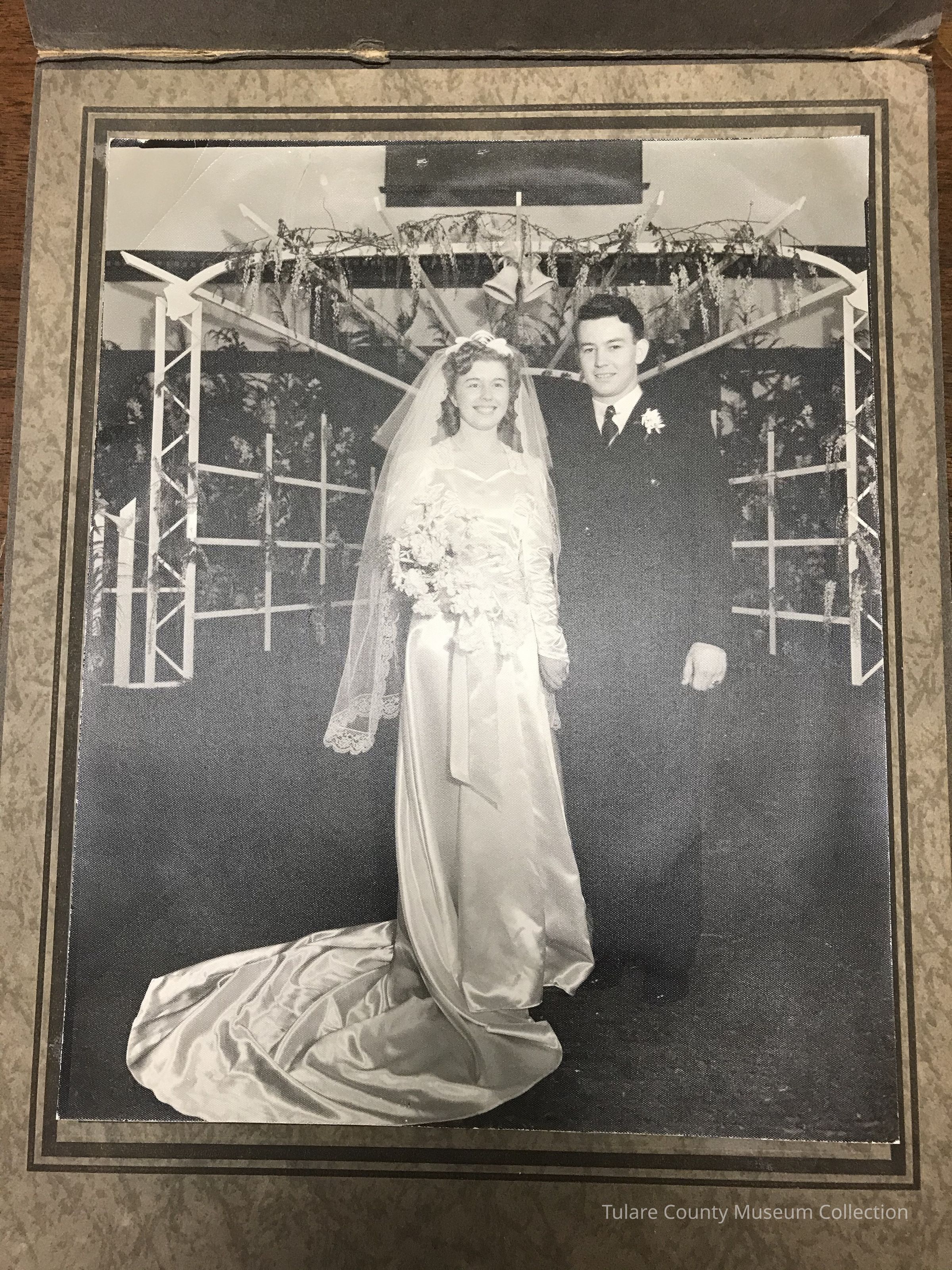 8x10 black and white wedding photograph of Rebecca Hartland and Bob Ellinwood in cardboard cover.