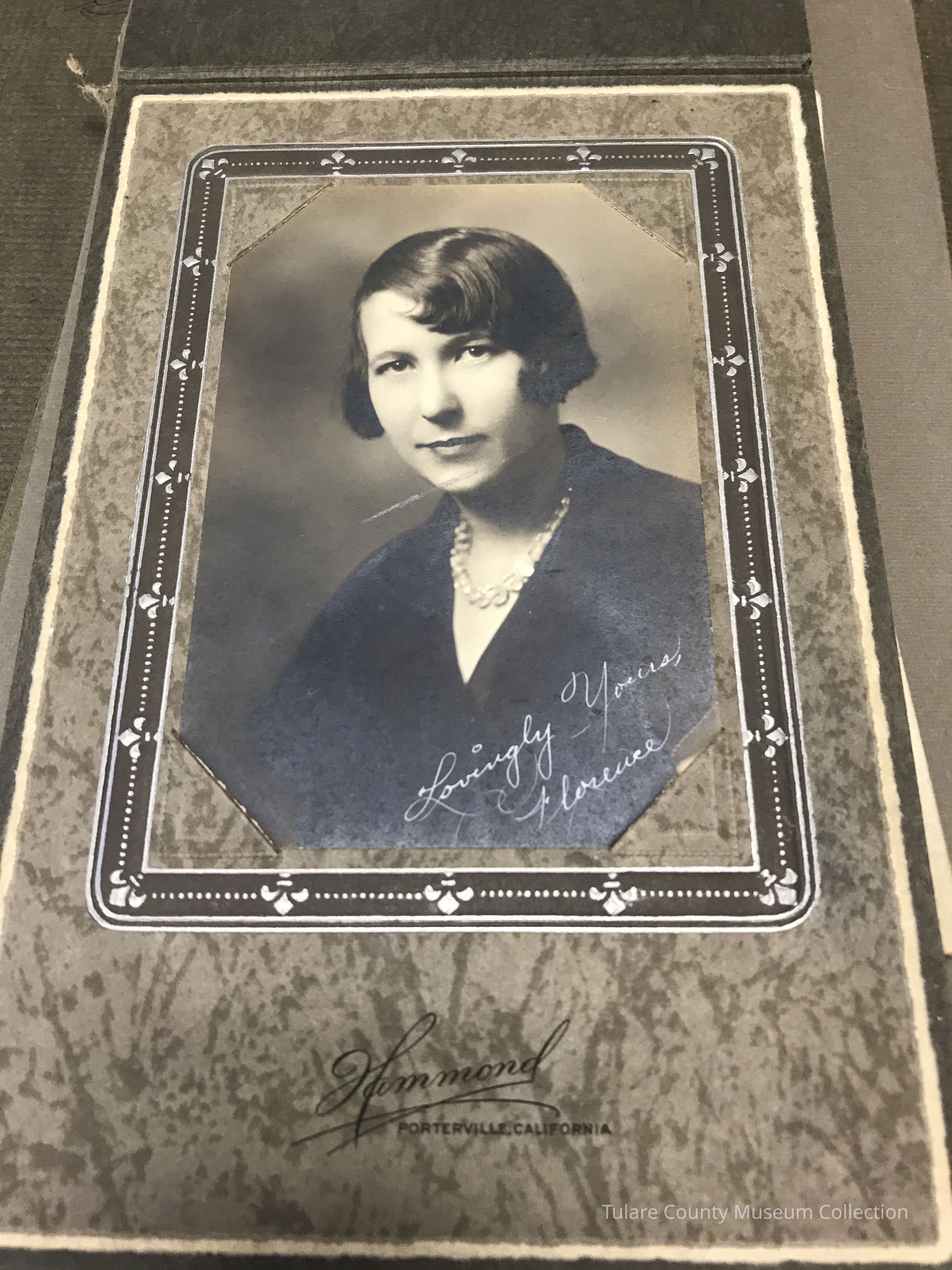 2x4 picture of Florence Alexander in cardboard cover. Printed by Hammond of Porterville, CA. Signed Lovingly Yours, Florence.