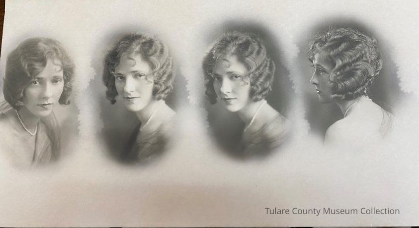 Panoramic photo with four images of Polly Ford, the first Miss Visalia.
