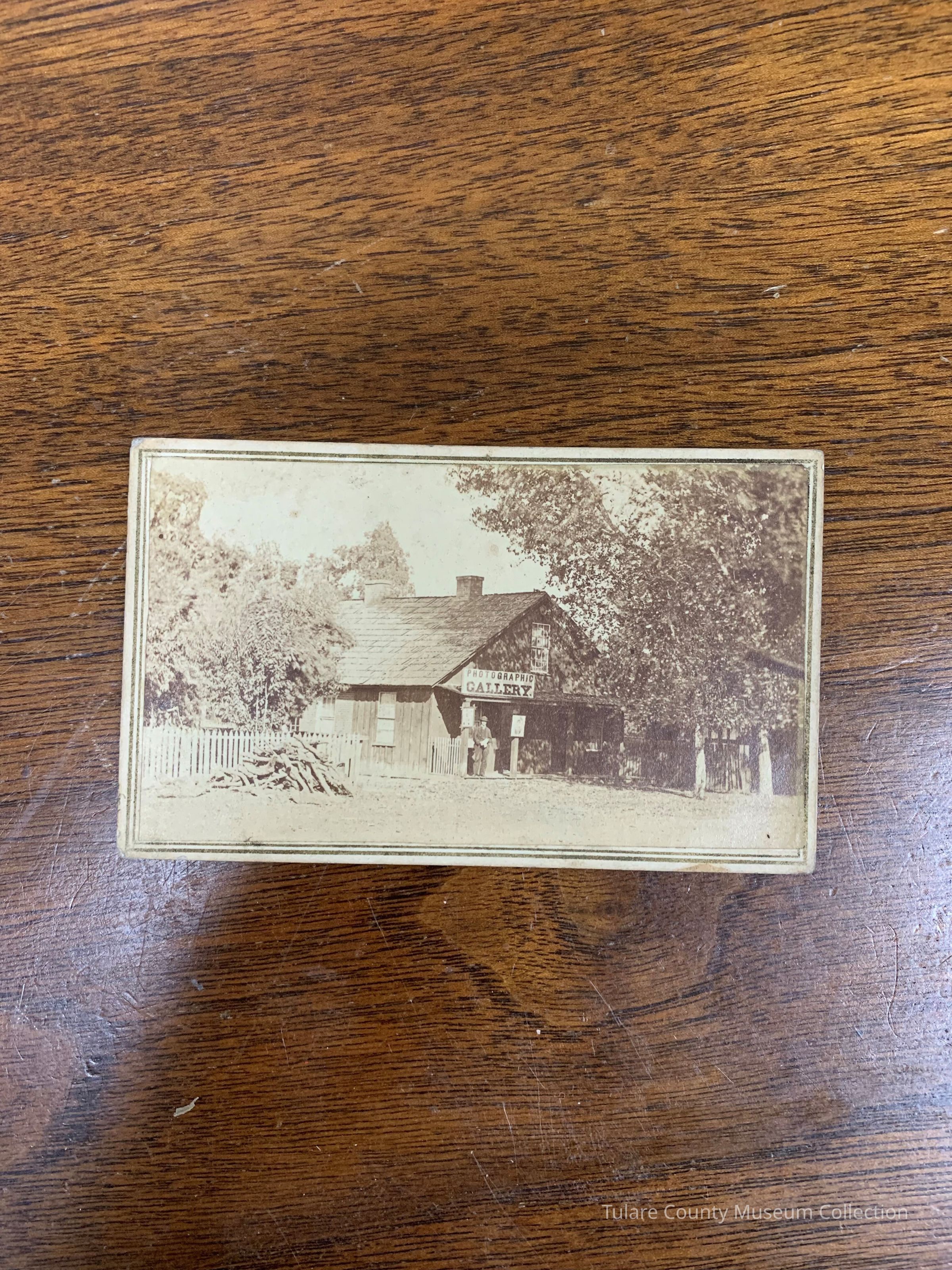 Black and white photo of a "Photographic Gallery" with man standing in front
