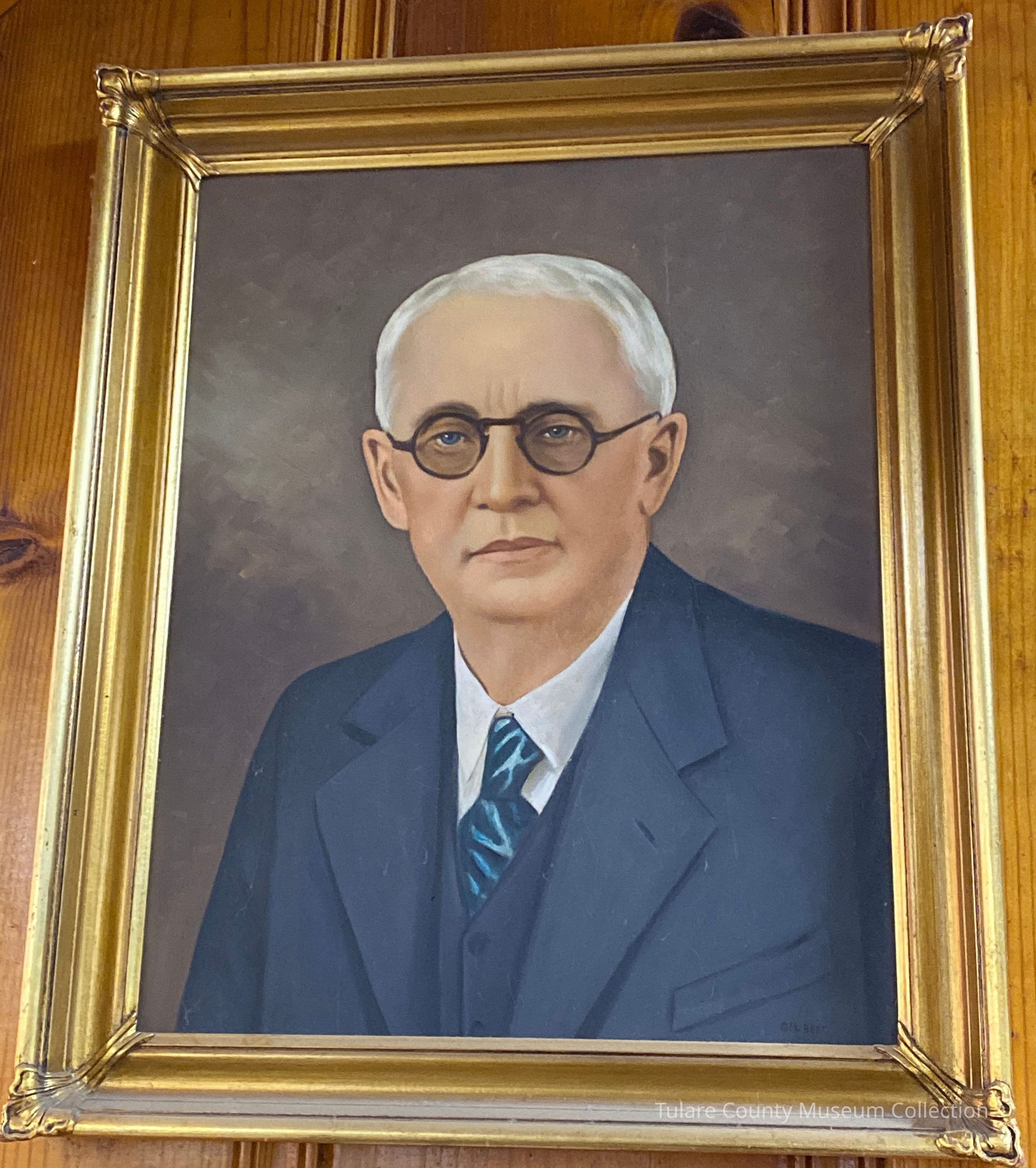 Painting of Ben M. Maddox. Painting is from the chest and up and is of Ben in his later life. Painting has a gold frame and possibly from the 1930s.