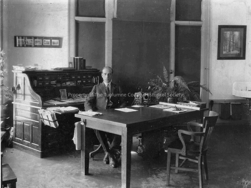 A business man sits at his desk. Interior scene at Standard Lumber Company, Could be Rassenfoss.