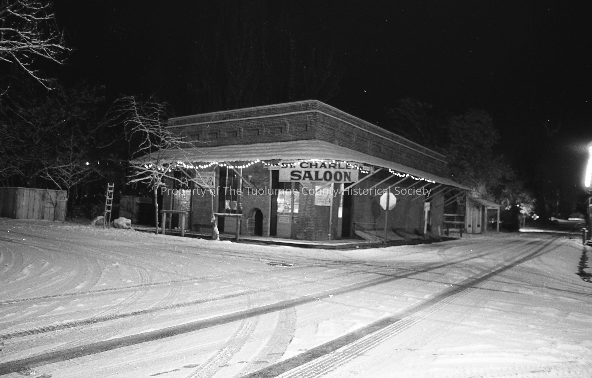 Columbia State Historic Park, St. Charles Saloon with snow. (2 photos)