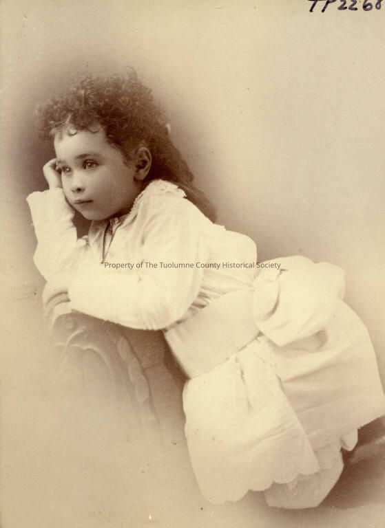 Fashion, People, Cady Family Album, childs dress, Dark Curly Hair, Eyelet Around Hem, Eyelet on Bloomers, Kneeling on a chair, Unidentified girl, Unidentified Child